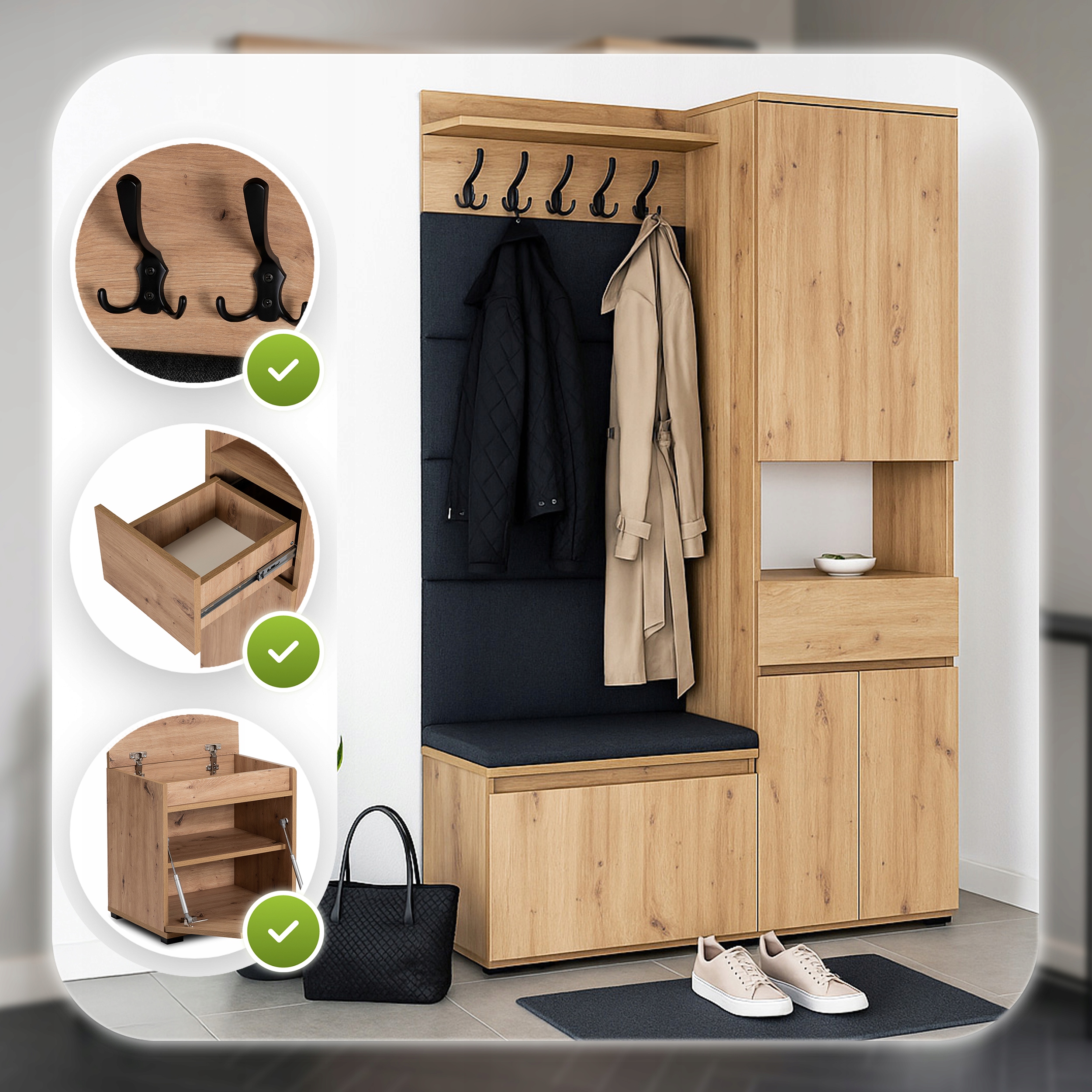 ✨ Zestaw Do Przedpokoju z Siedziskiem Garderoba Szafka Na Buty Dąb MODENA