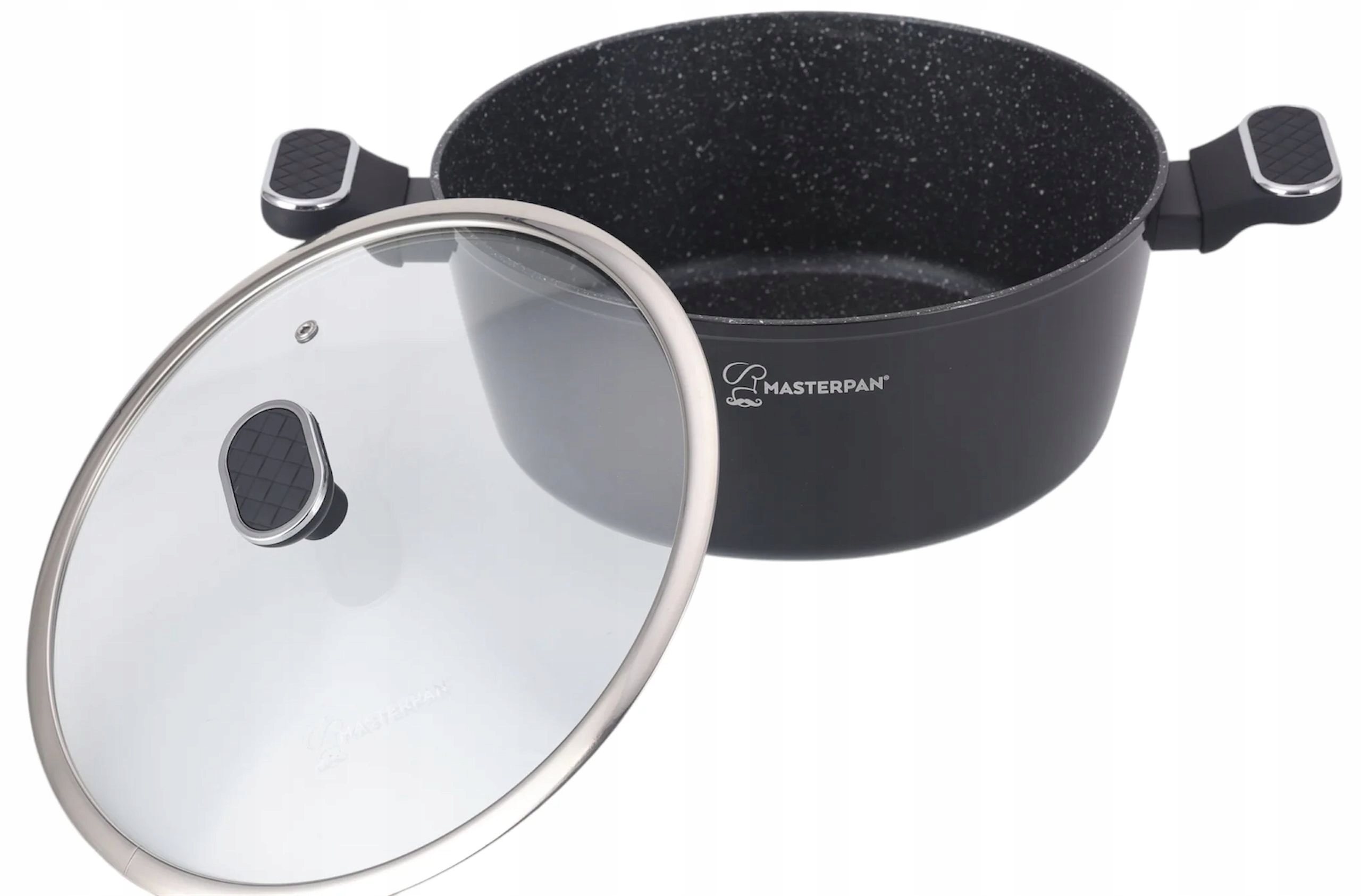 - Zestaw garnków marmur nie tylko zapewnia doskonałe właściwości użytkowe, ale także świetnie się prezentuje w kuchni dzięki eleganckiej, czarnej kolorystyce.