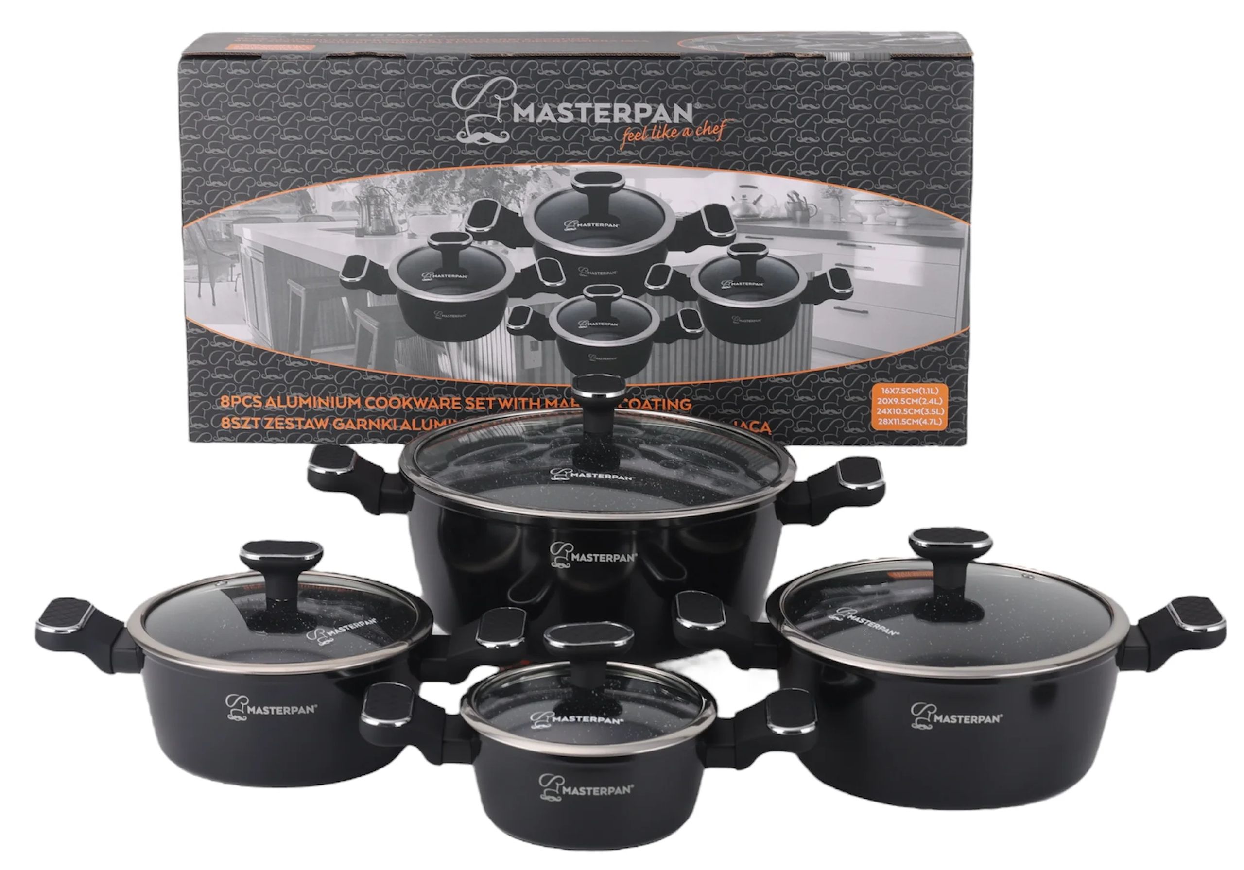 Zestaw Garnków Marmurowych 8-el. Czarne 16/20/24/28 cm Indukcja Gaz