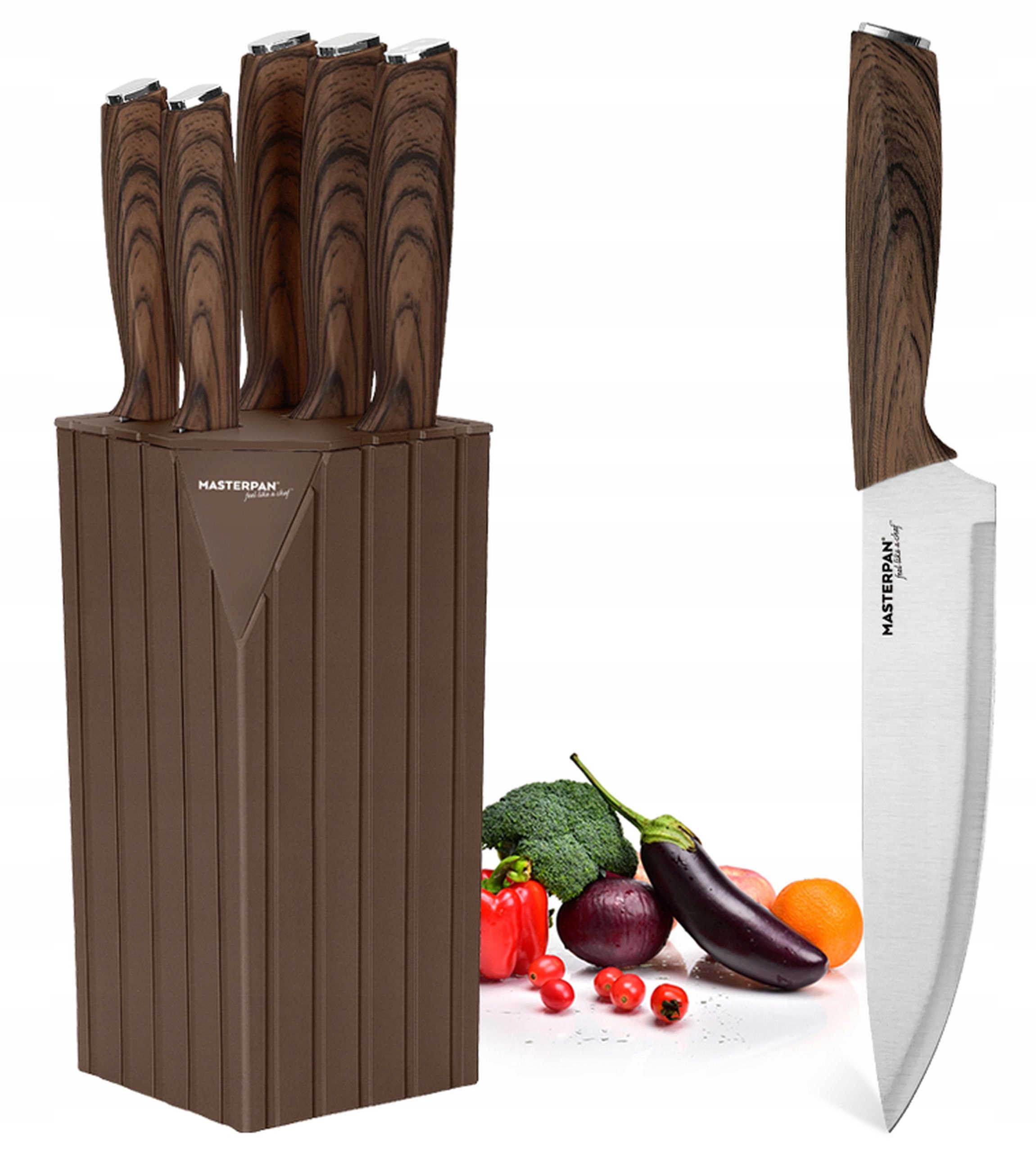 Zestaw eleganckich noży kuchennych 6-cz Masterpan precyzja i styl w kuchni