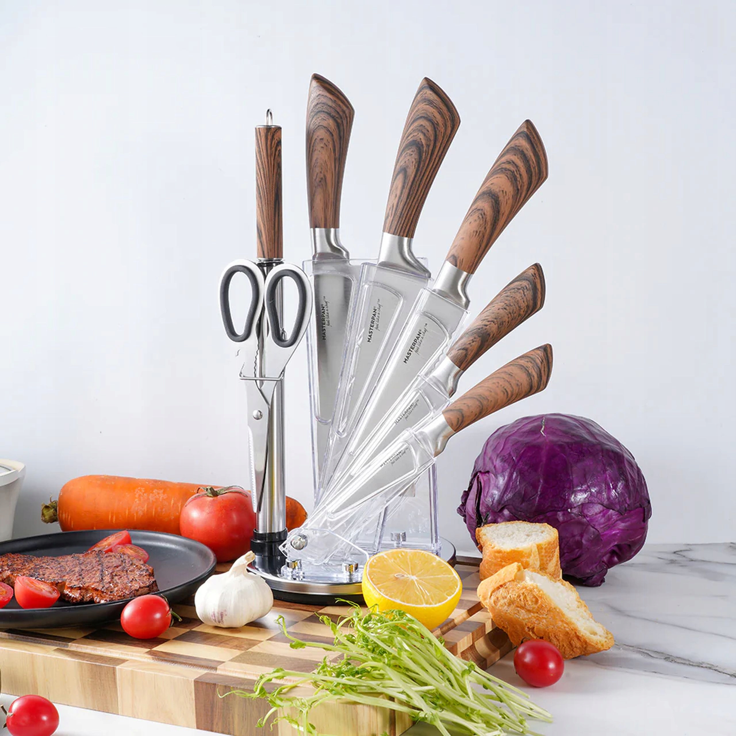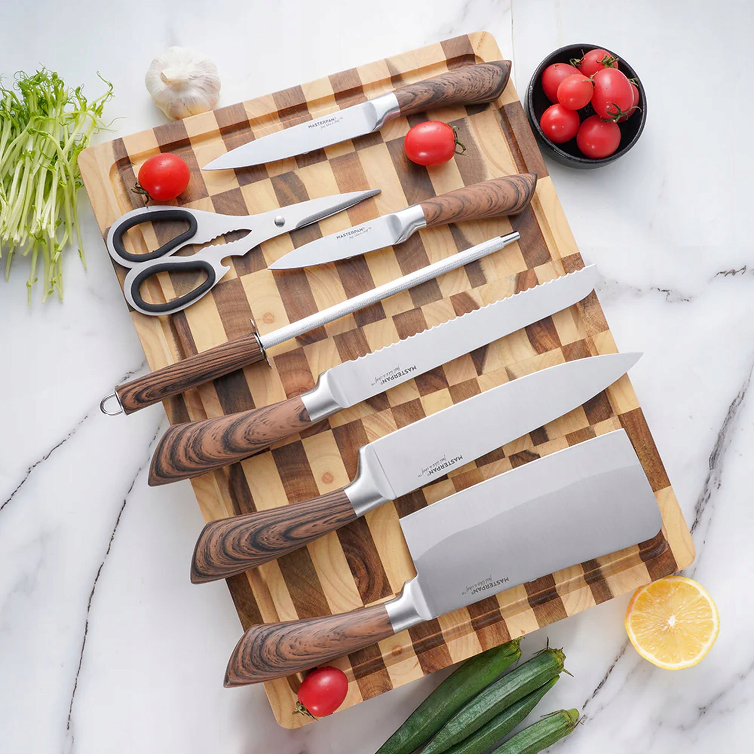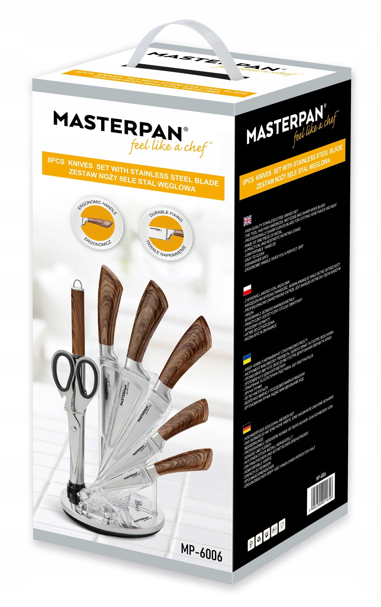 - Zestaw noży Masterpan został zaprojektowany z myślą o precyzyjnym i komfortowym krojeniu. Ostrza wykonane z wysokiej jakości stali nierdzewnej gwarantują długotrwałą ostrość i wytrzymałość.