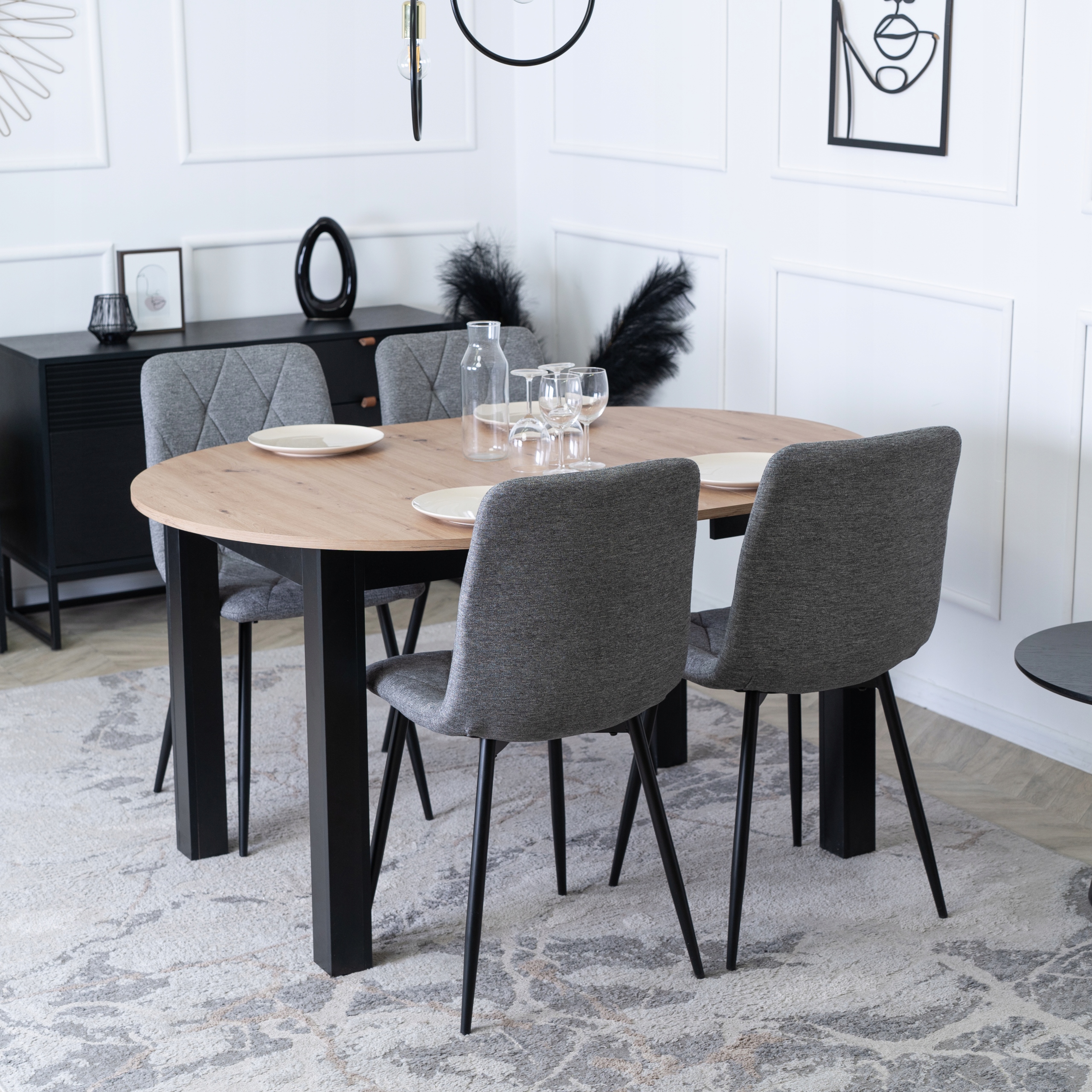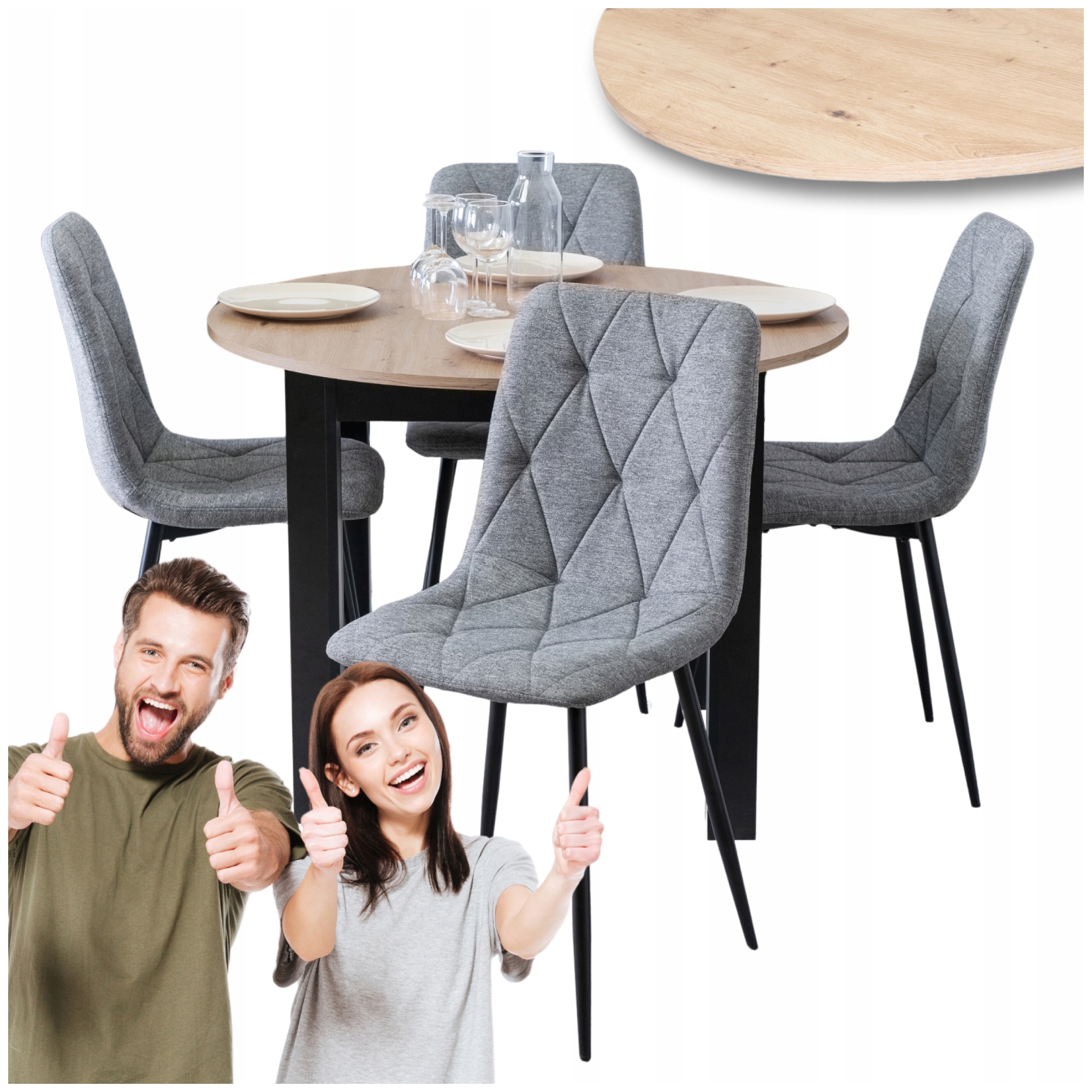 Zestaw Stół Rozkładany Kuchenny Krzesło Komplet Tapicerowane Szare 4x ⭐⭐⭐⭐⭐