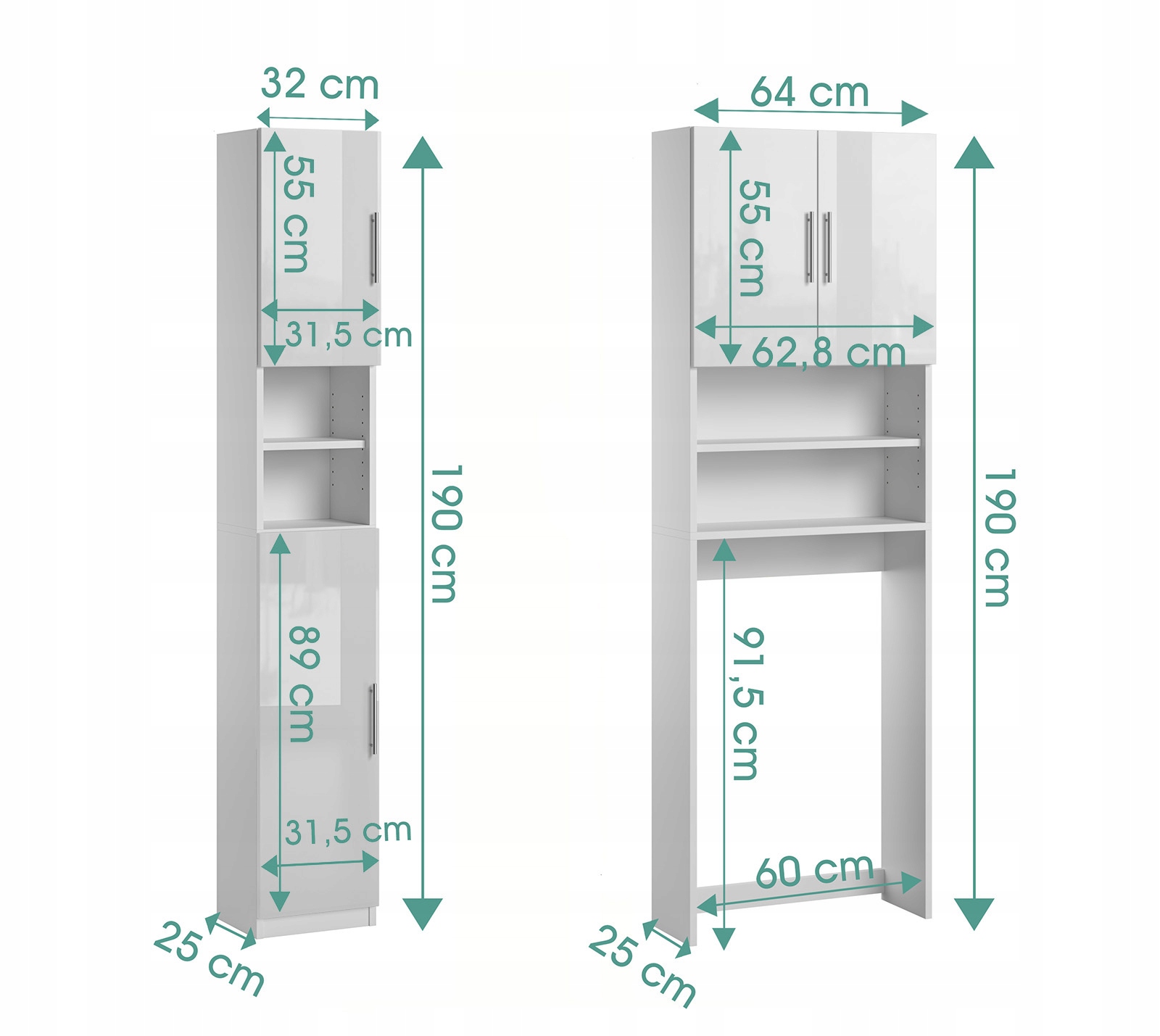 Zestaw Łazienkowy Regał Słupek Nad Pralkę Biały Połysk 190, 2107209