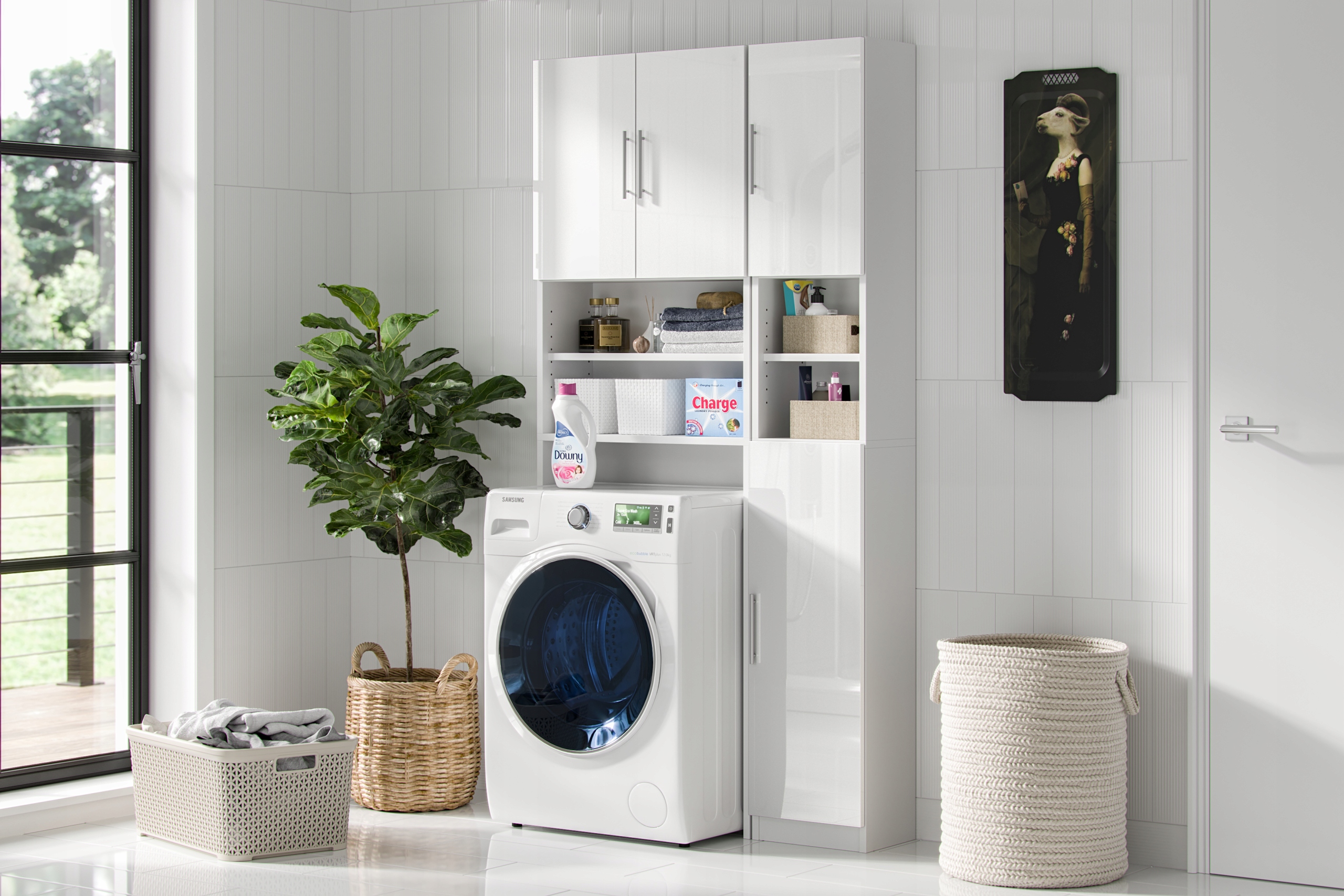 Optymalne wykorzystanie przestrzeni – praktyczne rozwiązanie nad pralkę i wąski słupek.