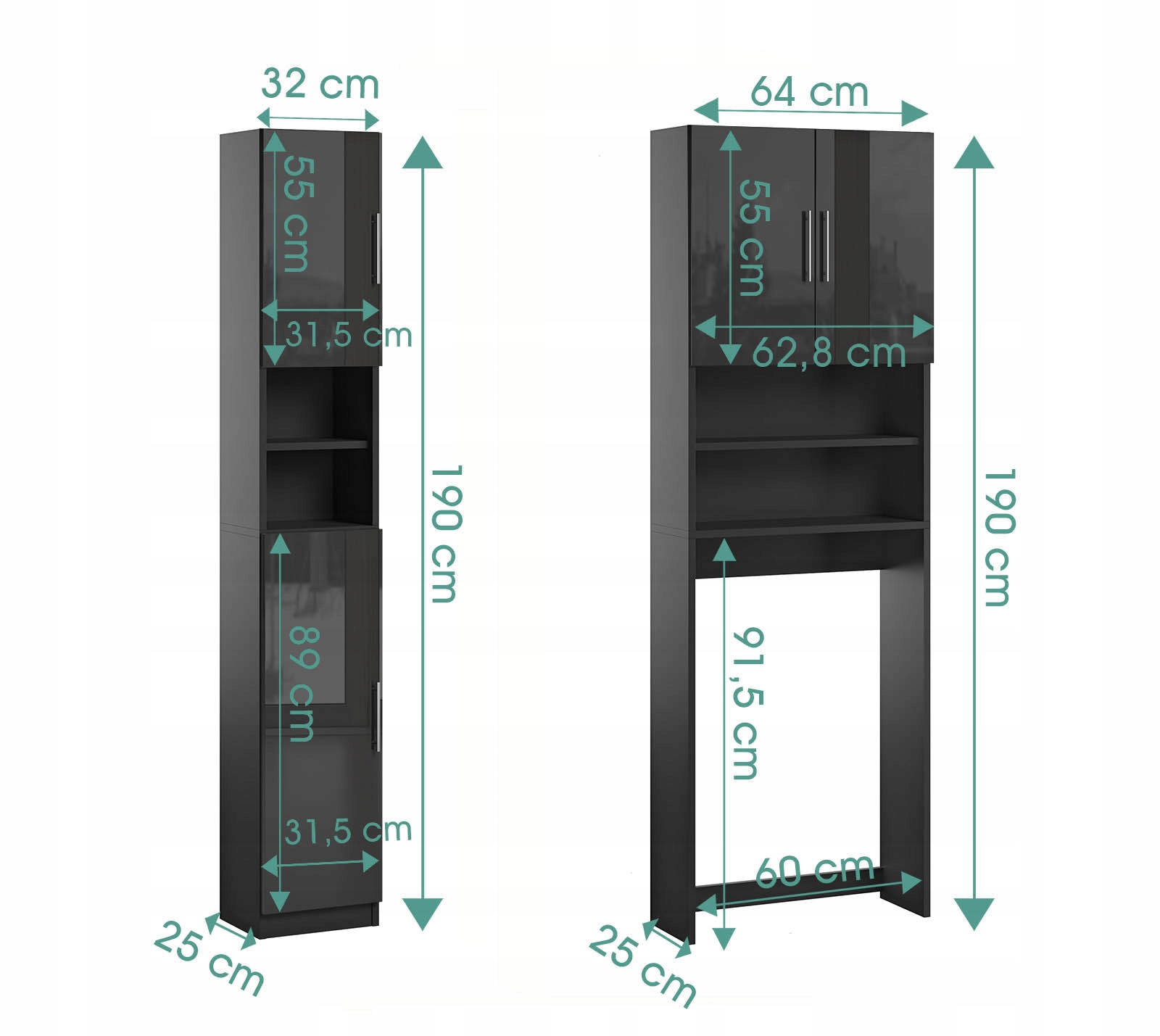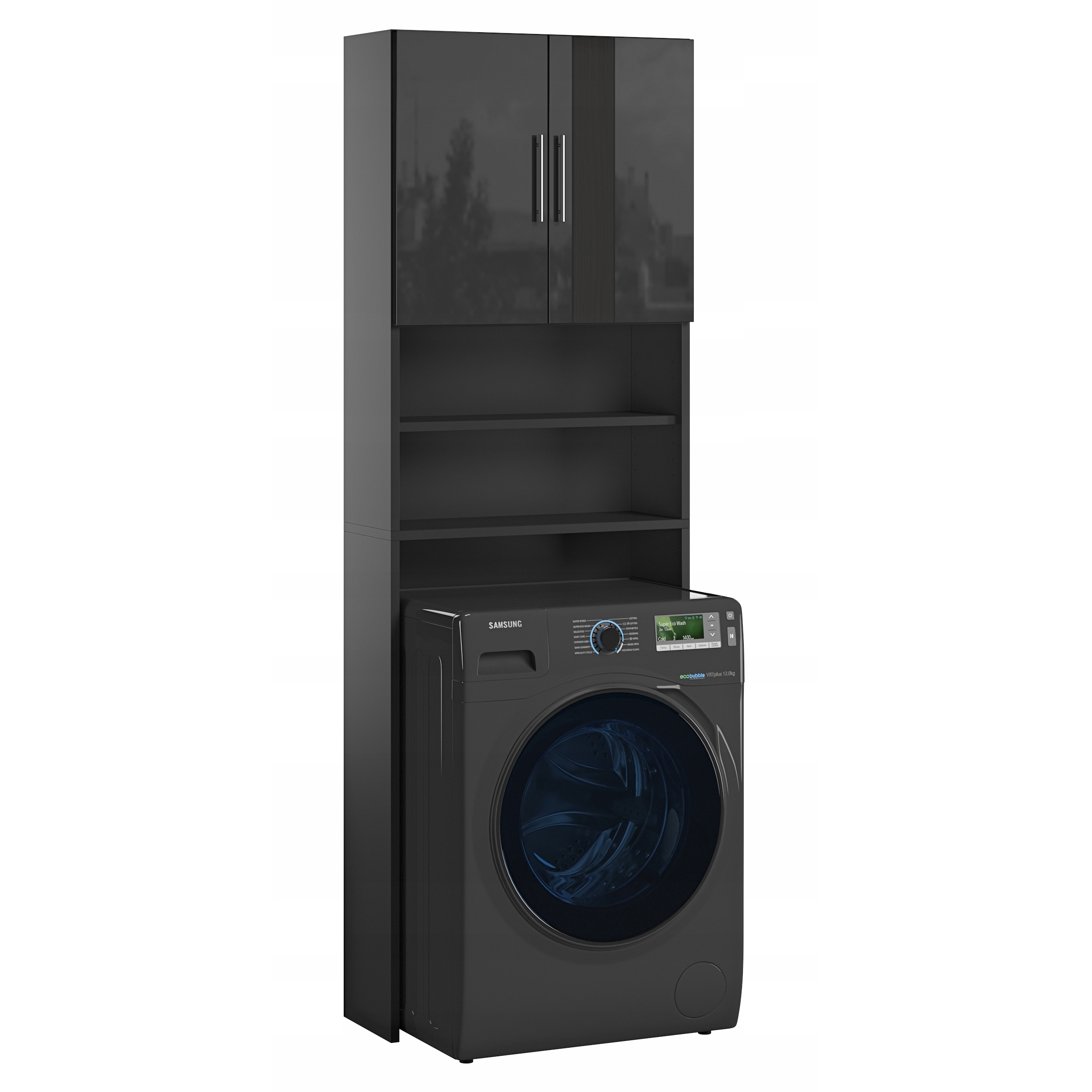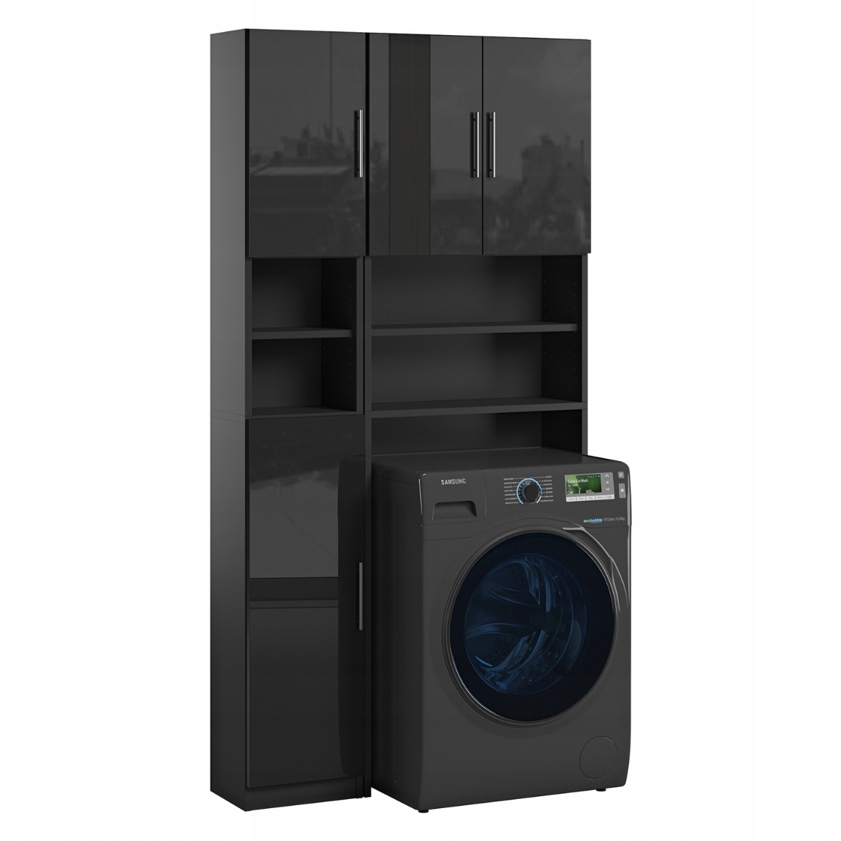Zestaw Łazienkowy Słupek Regał Nad Pralkę Czarny Połysk 190, 2107202