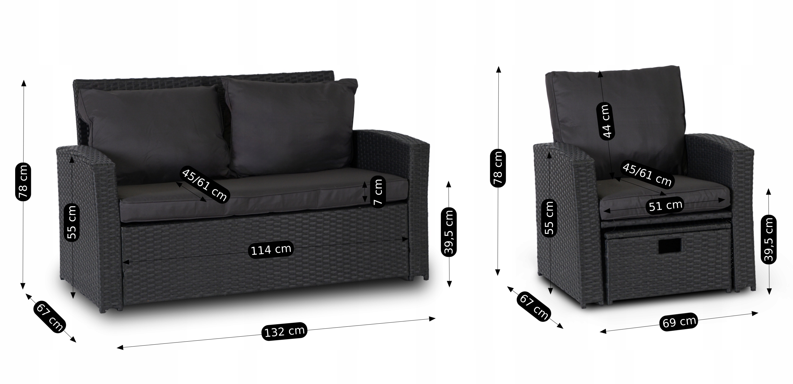 Zestaw wykonany jest z trwałego technorattanu – materiału odpornego na deszcz, słońce, mróz i wysokie temperatury. Nie blaknie pod wpływem promieni UV, nie odkształca się i długo zachowuje nienaganny wygląd. 🌿
