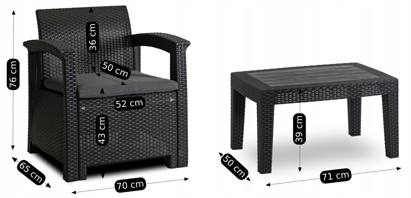 ✅ Meble wykonane są z wysokiej jakości materiału odpornego na promieniowanie UV, wilgoć, mróz i zmienne warunki pogodowe.
