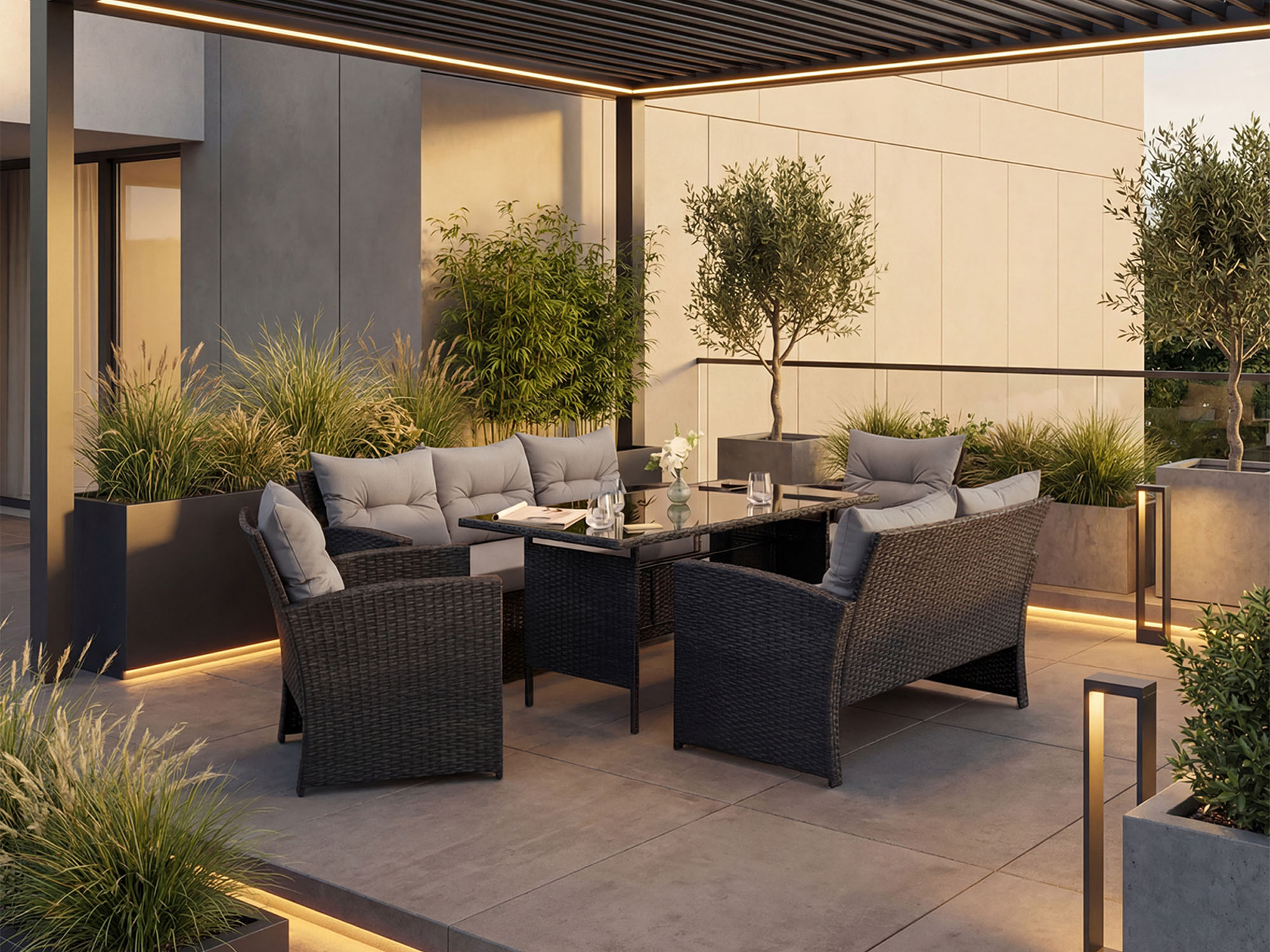 Zestaw mebli ogrodowych 7 os MARSYLIA BIG BP | Techrat | Czarny | Pod szar, 6489928
