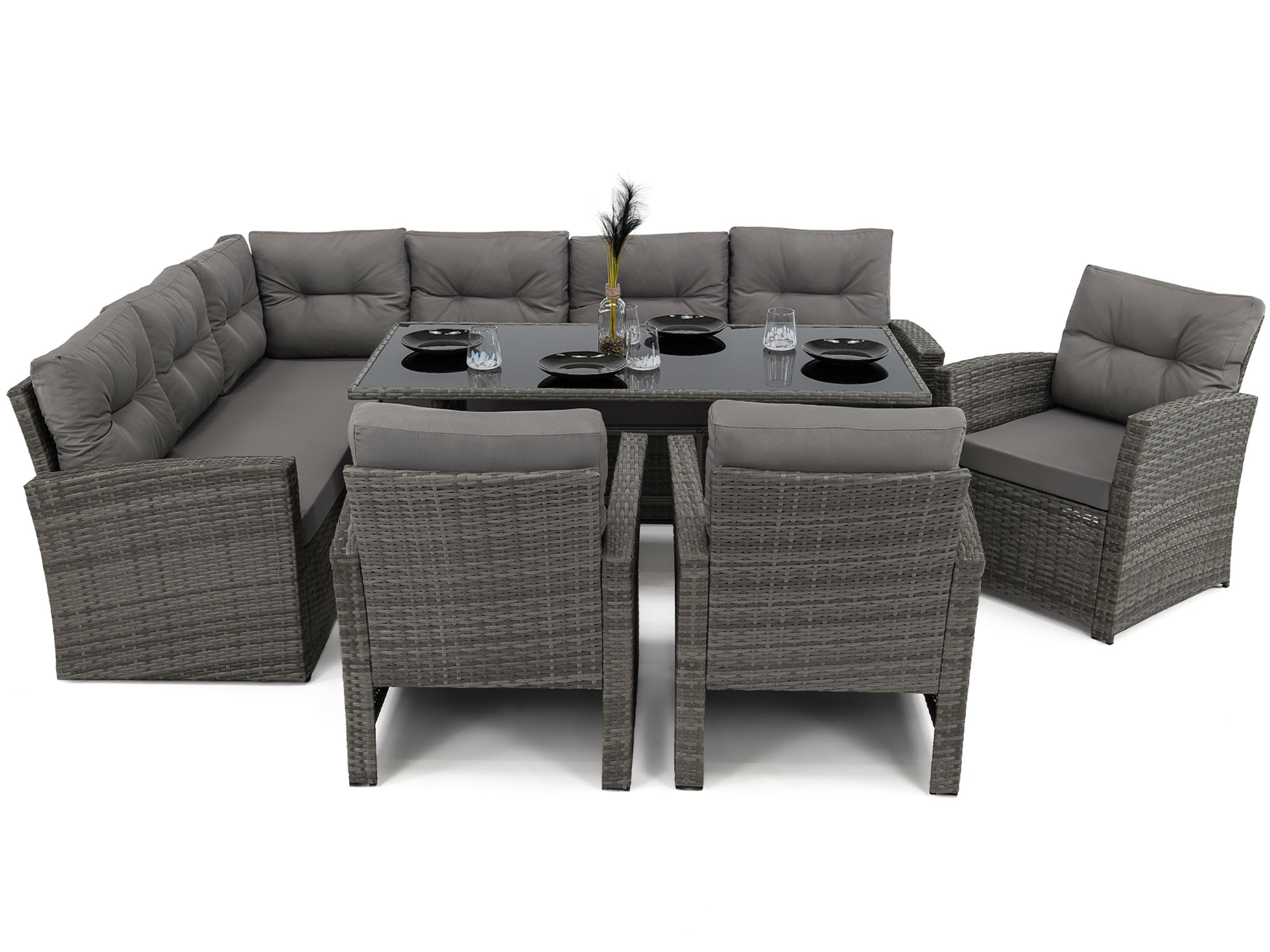 - Praktyczny i wygodny komplet mebli do ogrodu dla 9 osób