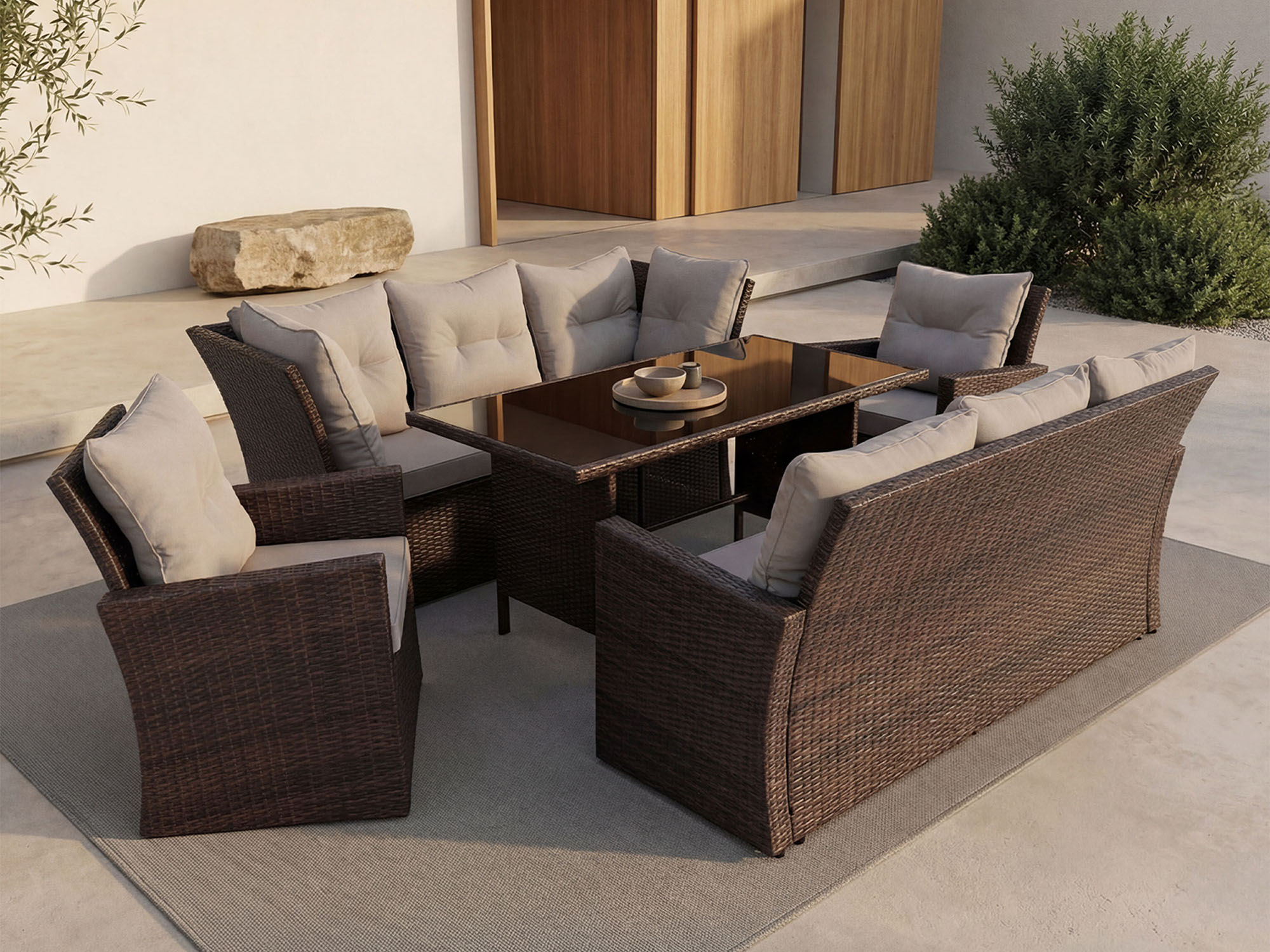 • Praktyczny komplet mebli do ogrodu dla 8 osób