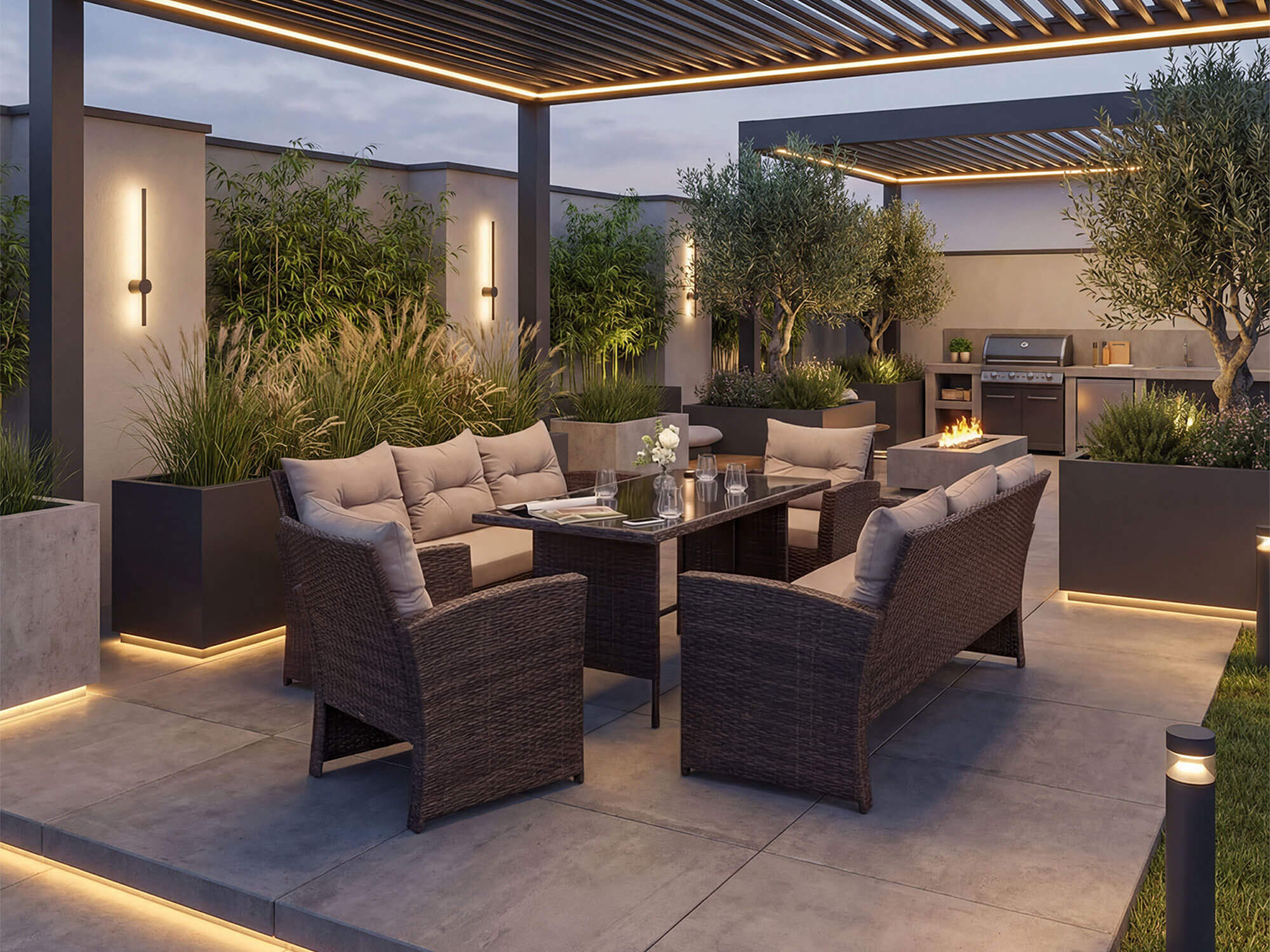 • Praktyczny komplet mebli do ogrodu dla 8 osób