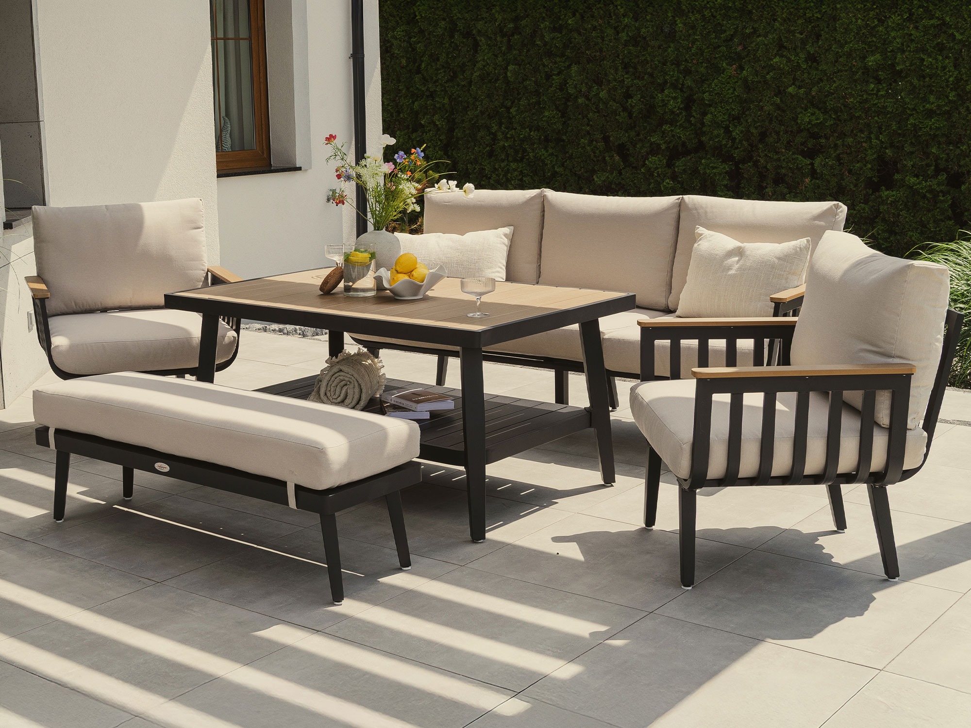 Zestaw mebli ogrodowych z aluminium OSLO | Czarny | Beżowe poduszki