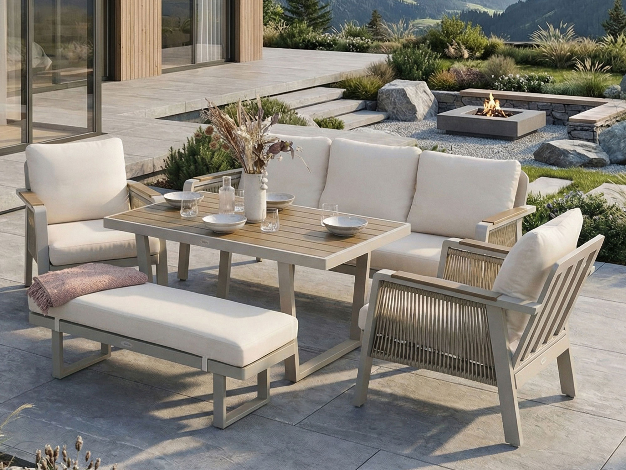 - Zestaw mebli ogrodowych na ramie aluminiowej