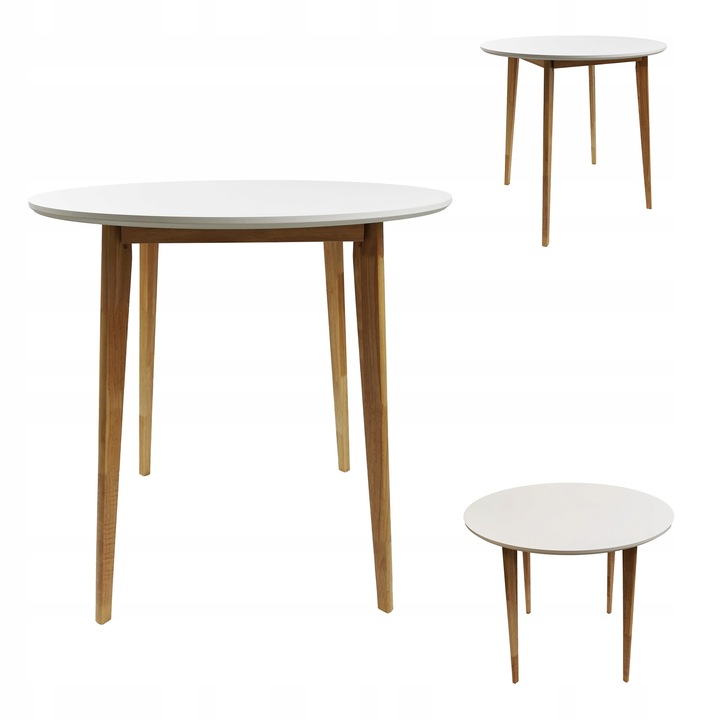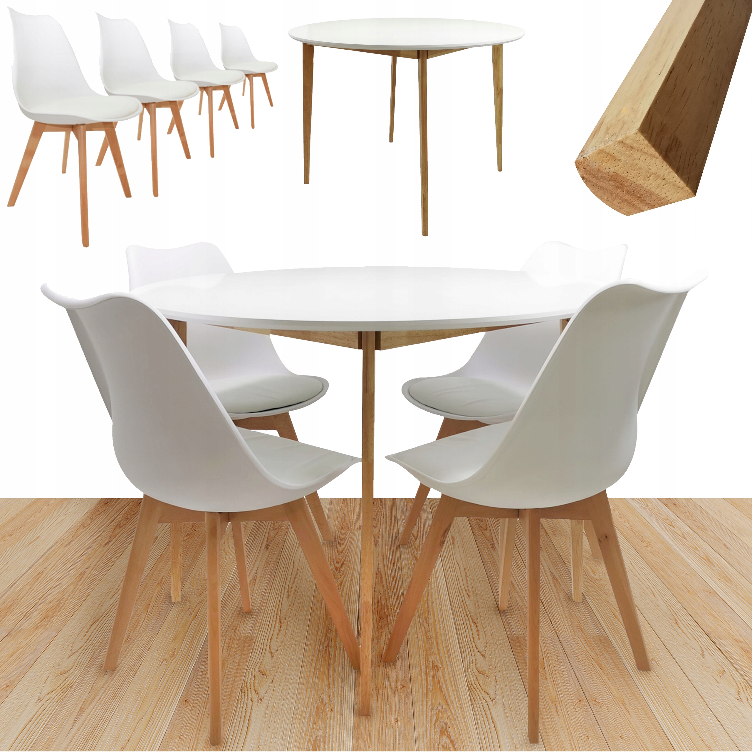 4x Krzesło EMMA BIAŁE + Stół EMMA FI80x75 cm BIAŁY