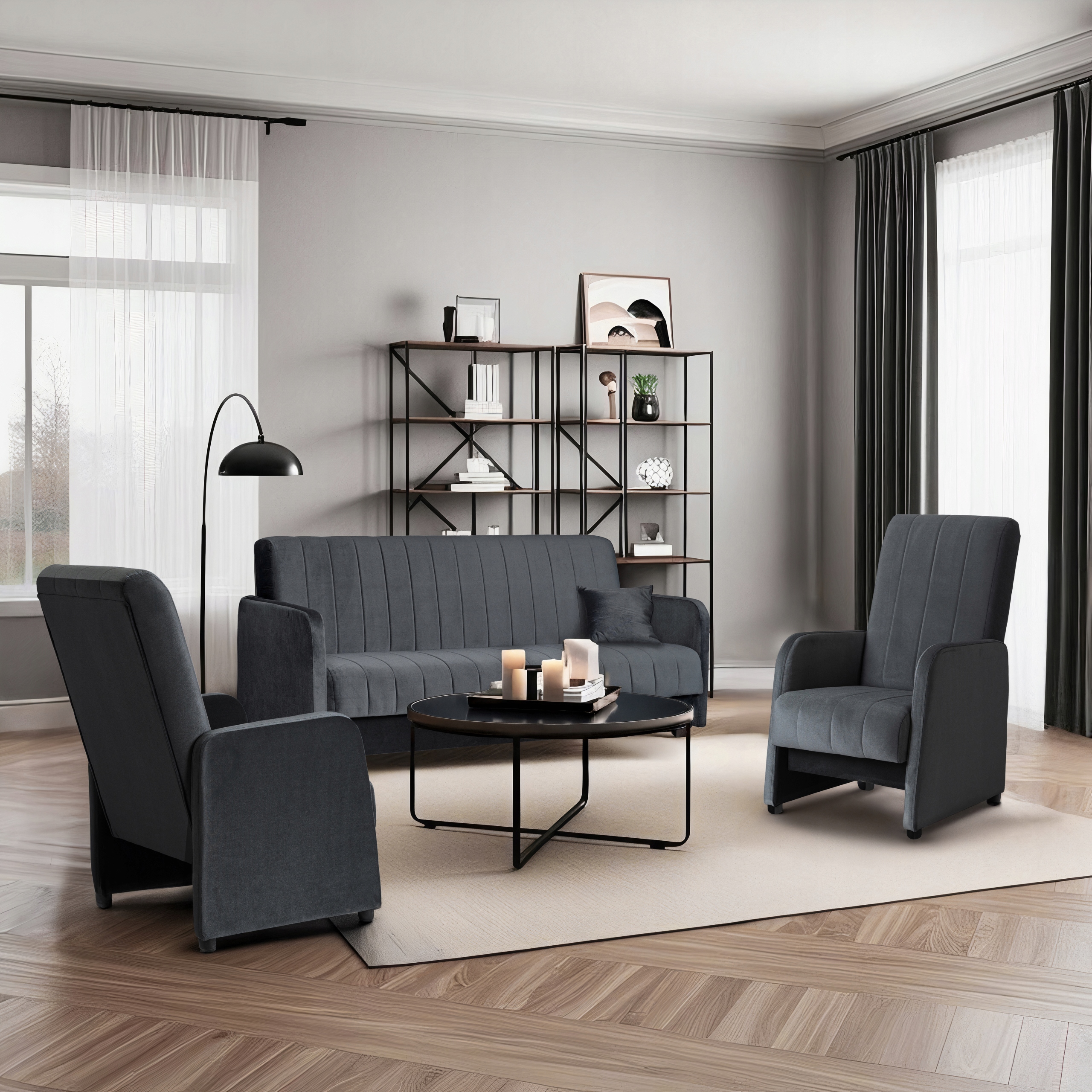 Zestaw Mebli Wersalka Kanapa Rozkładana Szara i 2x Fotel Wypoczynkowy PORTO ⭐⭐⭐⭐⭐