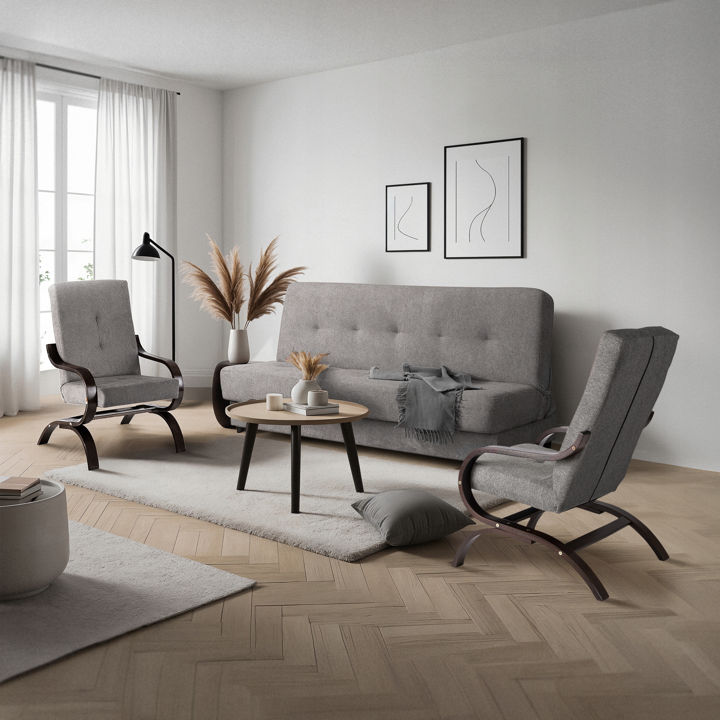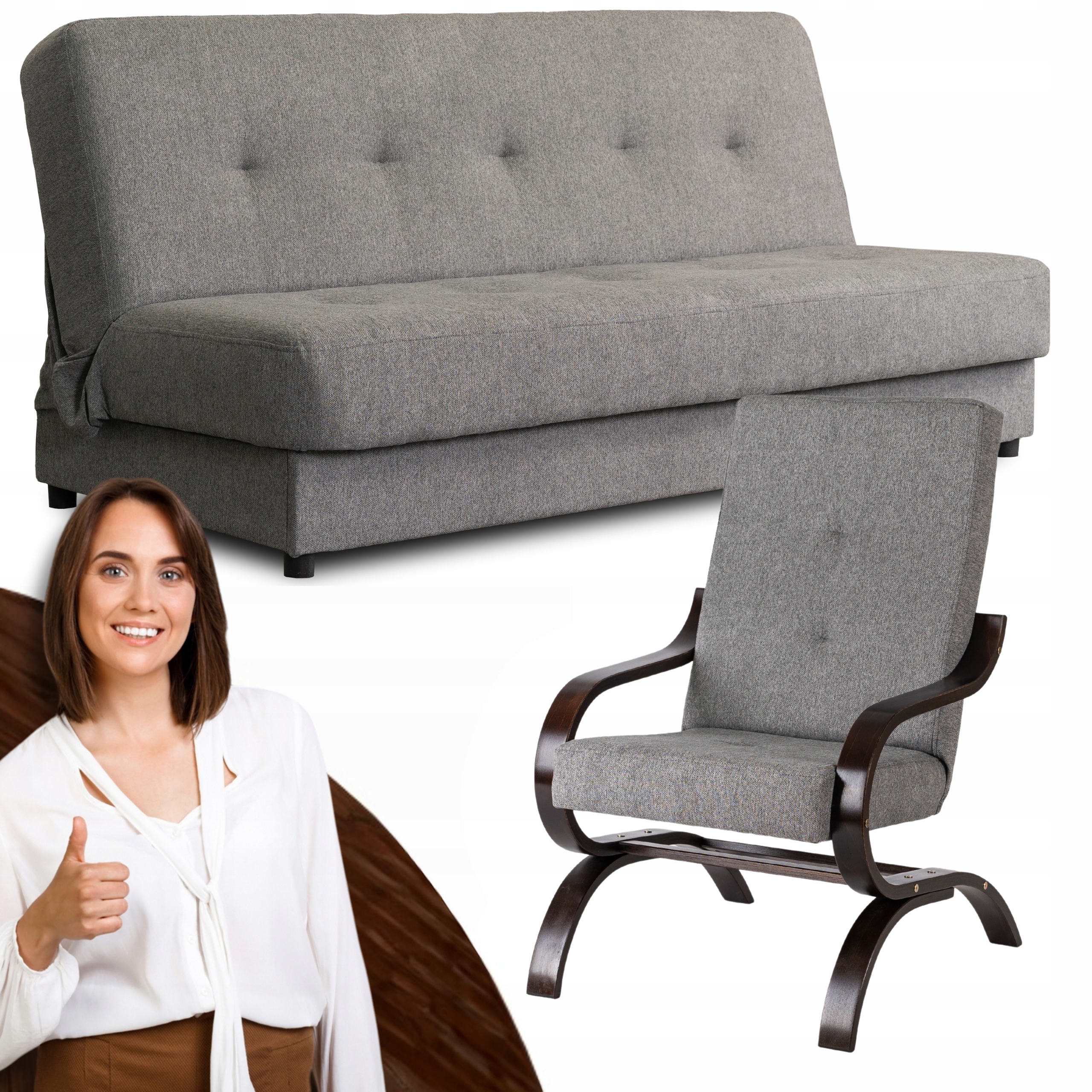 Zestaw Mebli Wersalka Kanapa Rozkładana Szara i Fotel Szary ARUBA ⭐⭐⭐⭐⭐