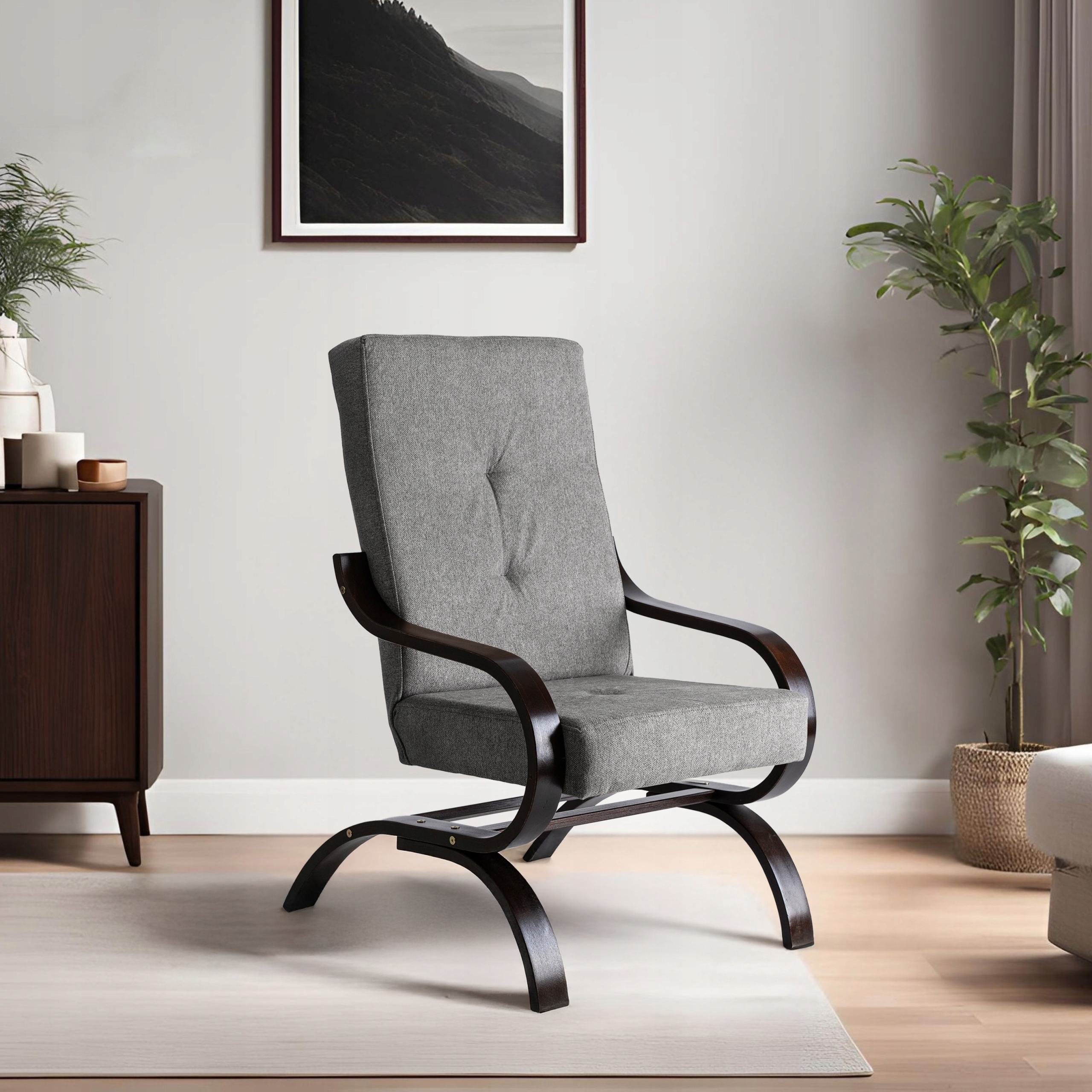➡ To bardzo ładny i ciekawy fotel, którego nogi oraz podłokietniki są wykonane z drewna giętego.