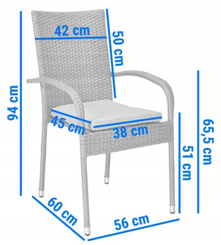 - Wymiary krzesła: 94 x 56 x 60 cm