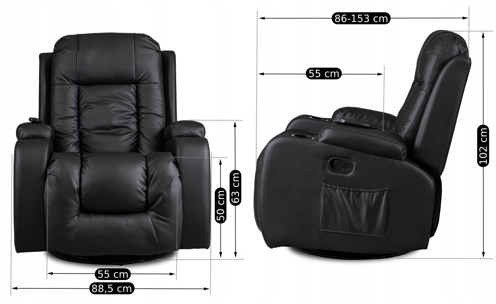 ✅ Podłokietniki z miejscami na napoje