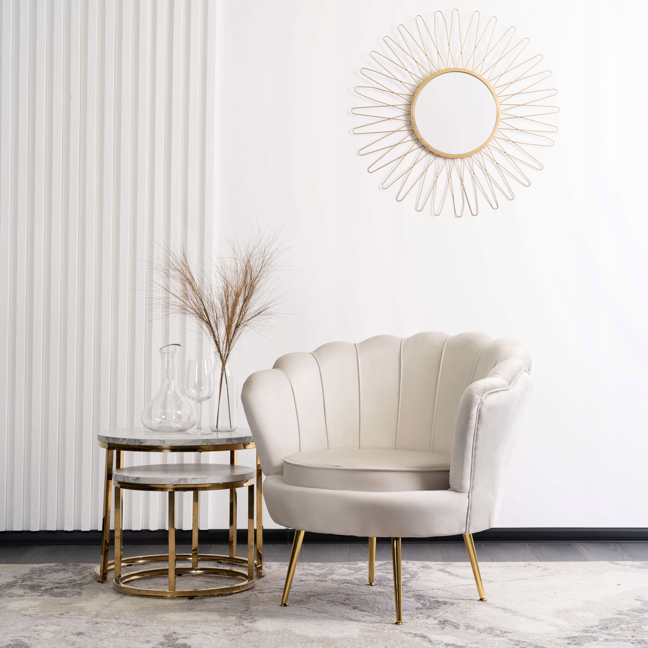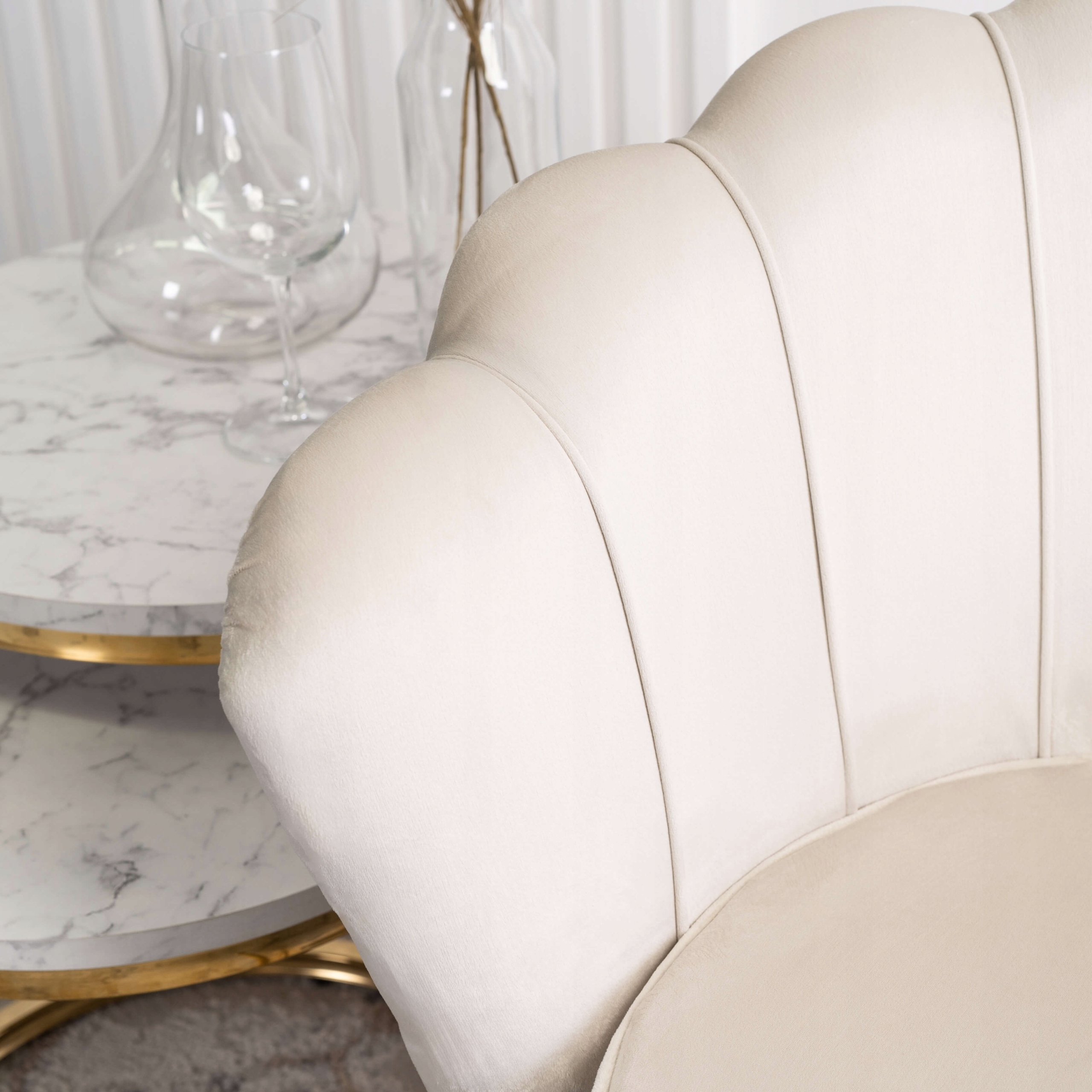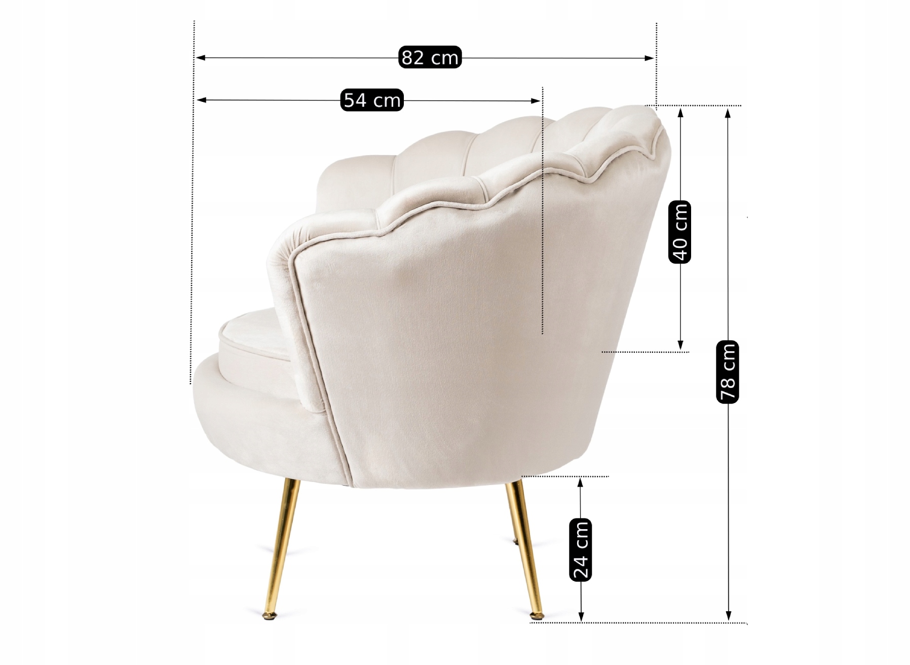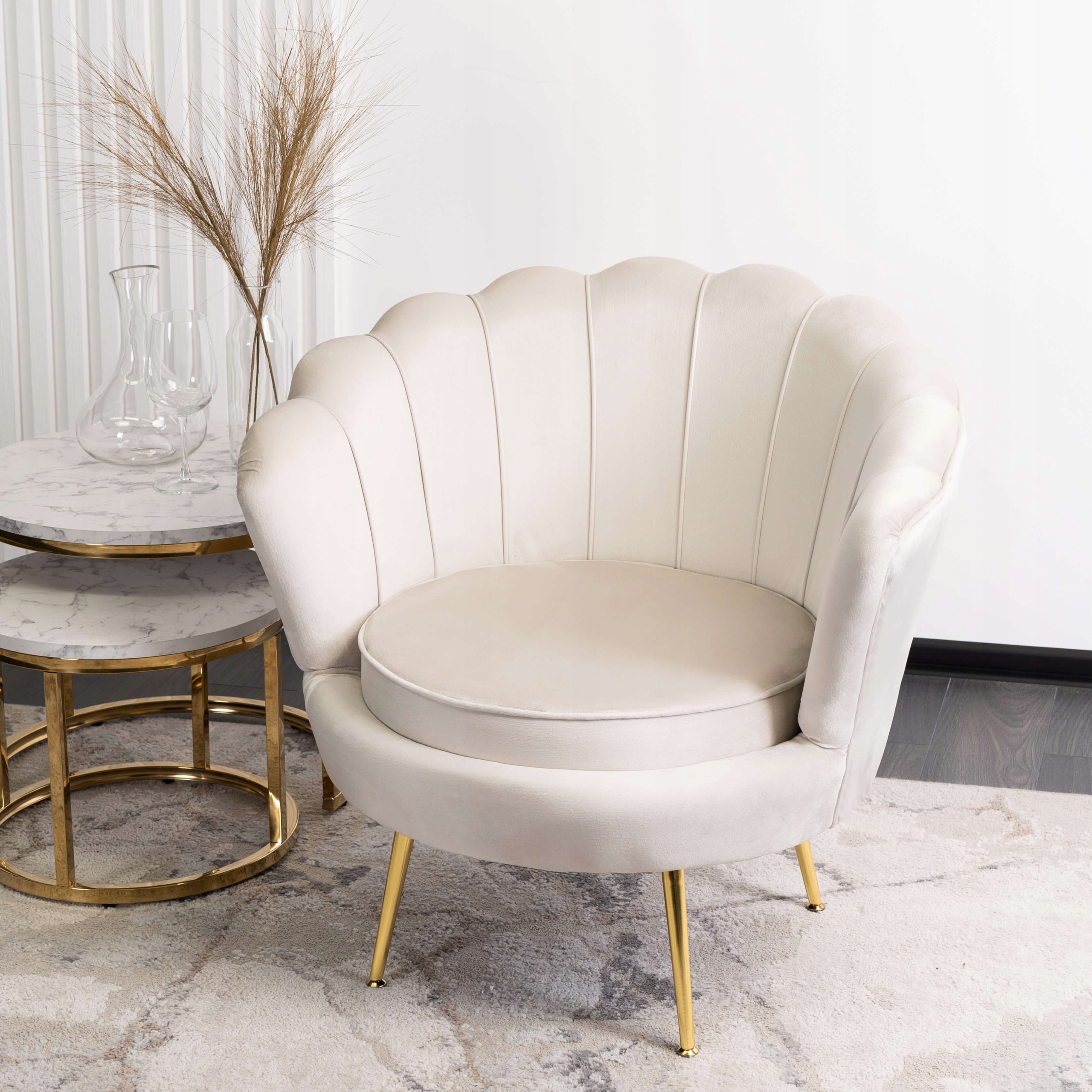 Zestaw Sofa Kremowa i Fotel Krem Muszelka Meble Wypoczynkowe Glamour Złote ⭐⭐⭐⭐⭐