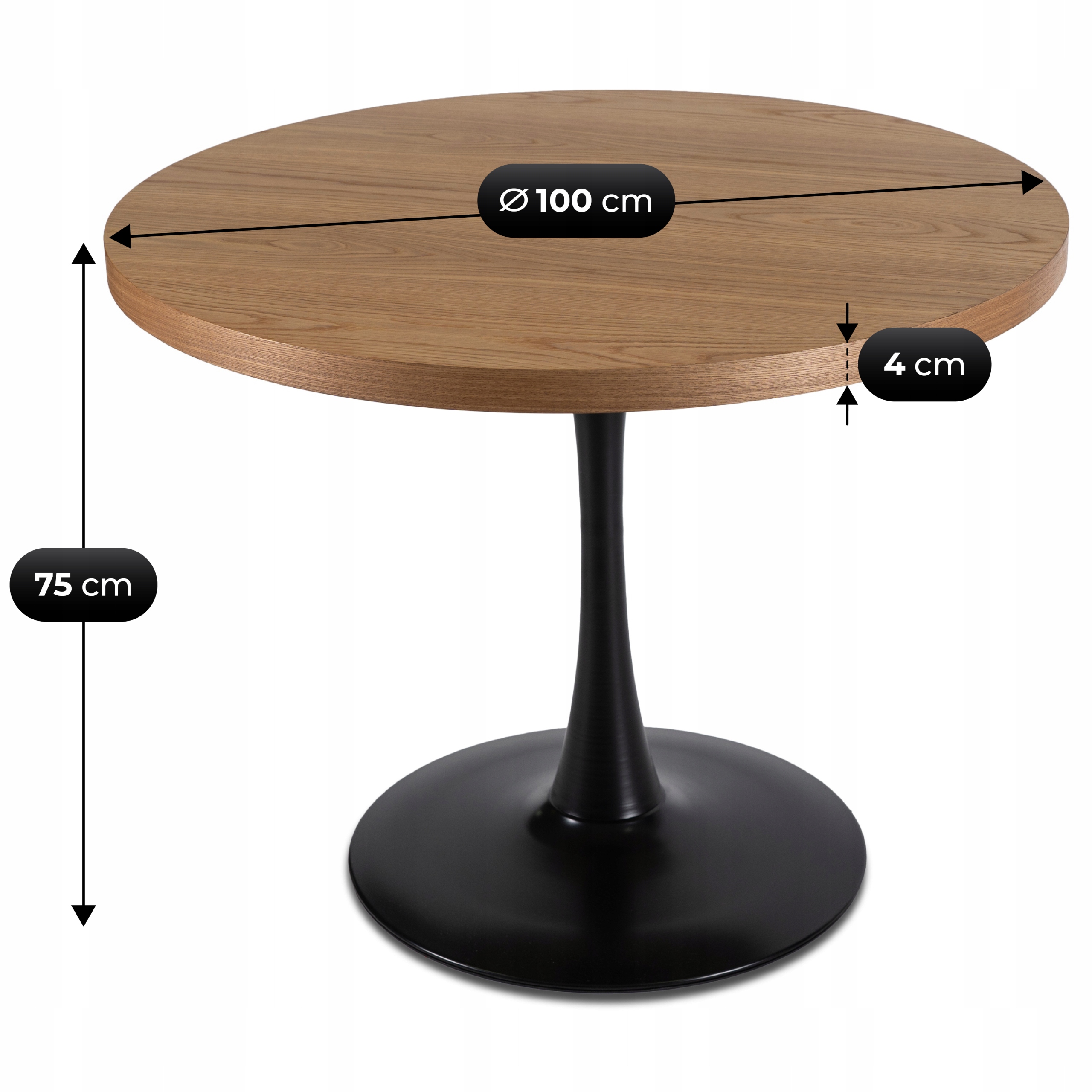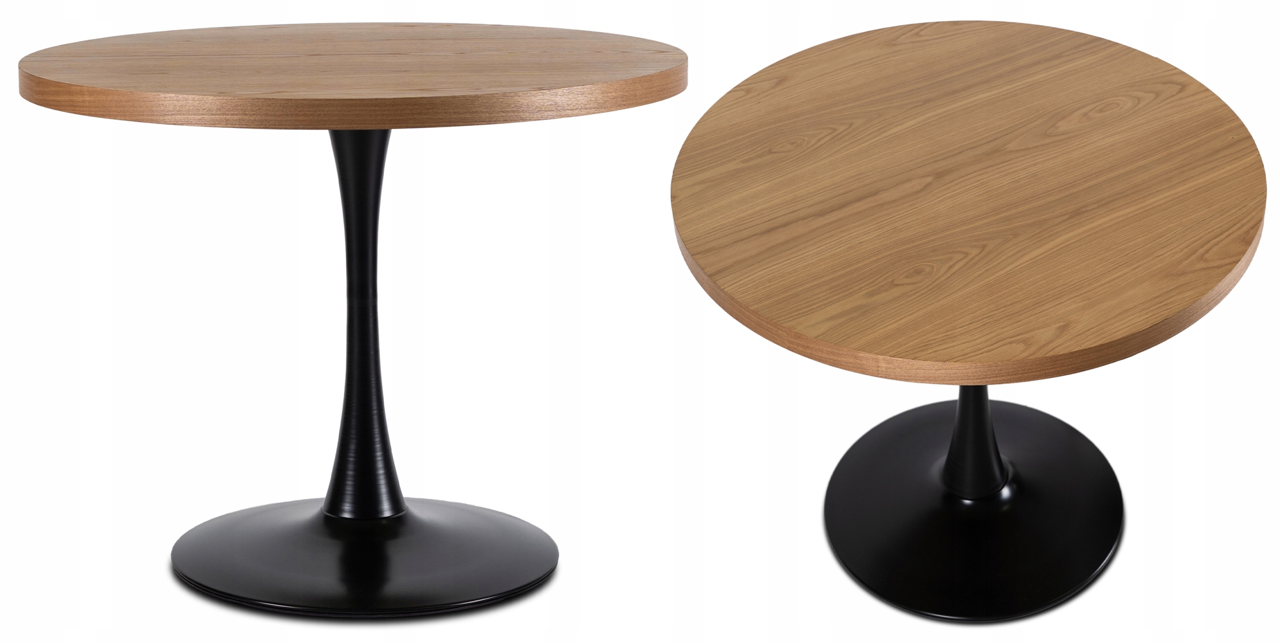 - ELEGANCKI I STABILNY STÓŁ LINO - Okrągły blat o średnicy 100 cm w ciepłym odcieniu dębu zachwyca prostotą i solidnością.