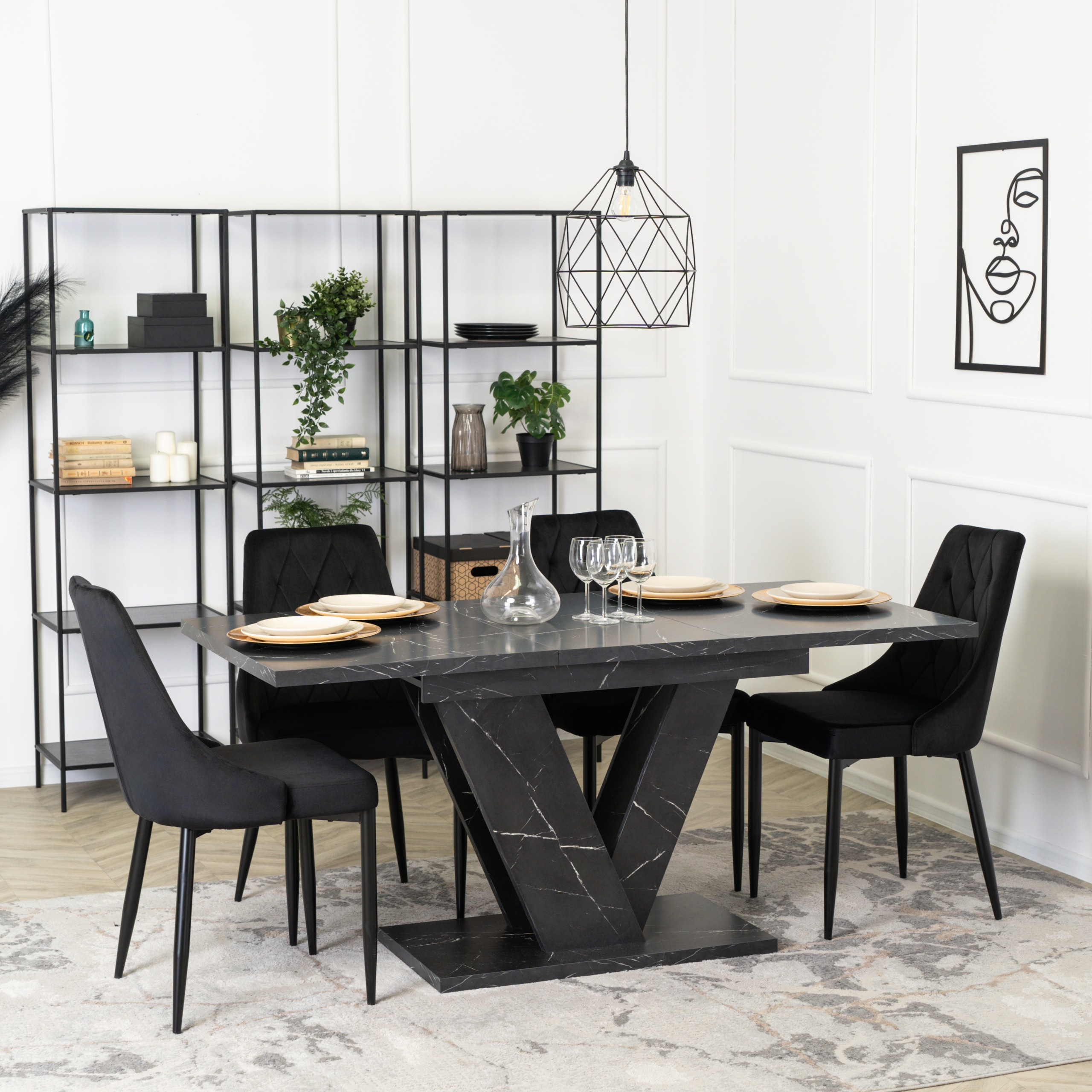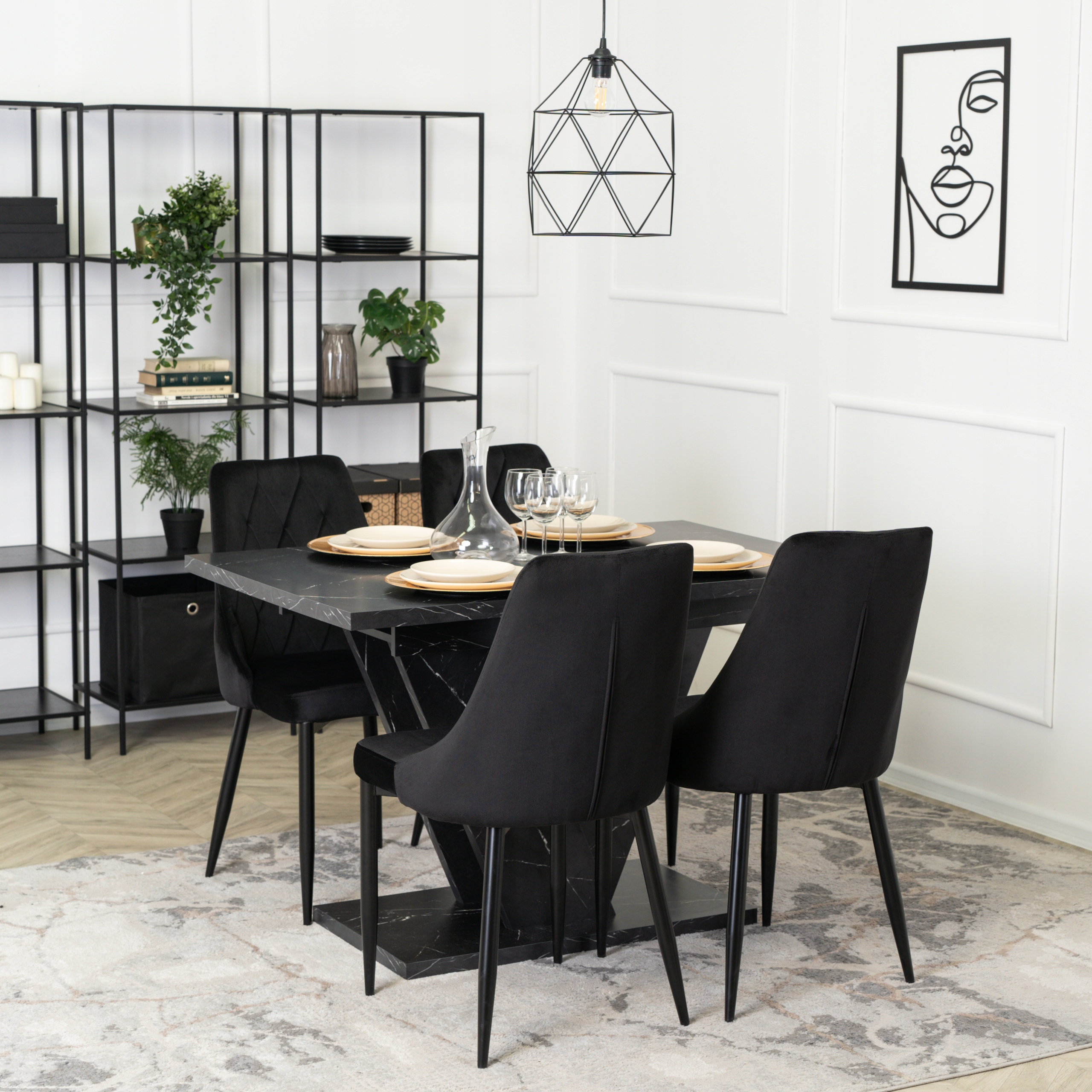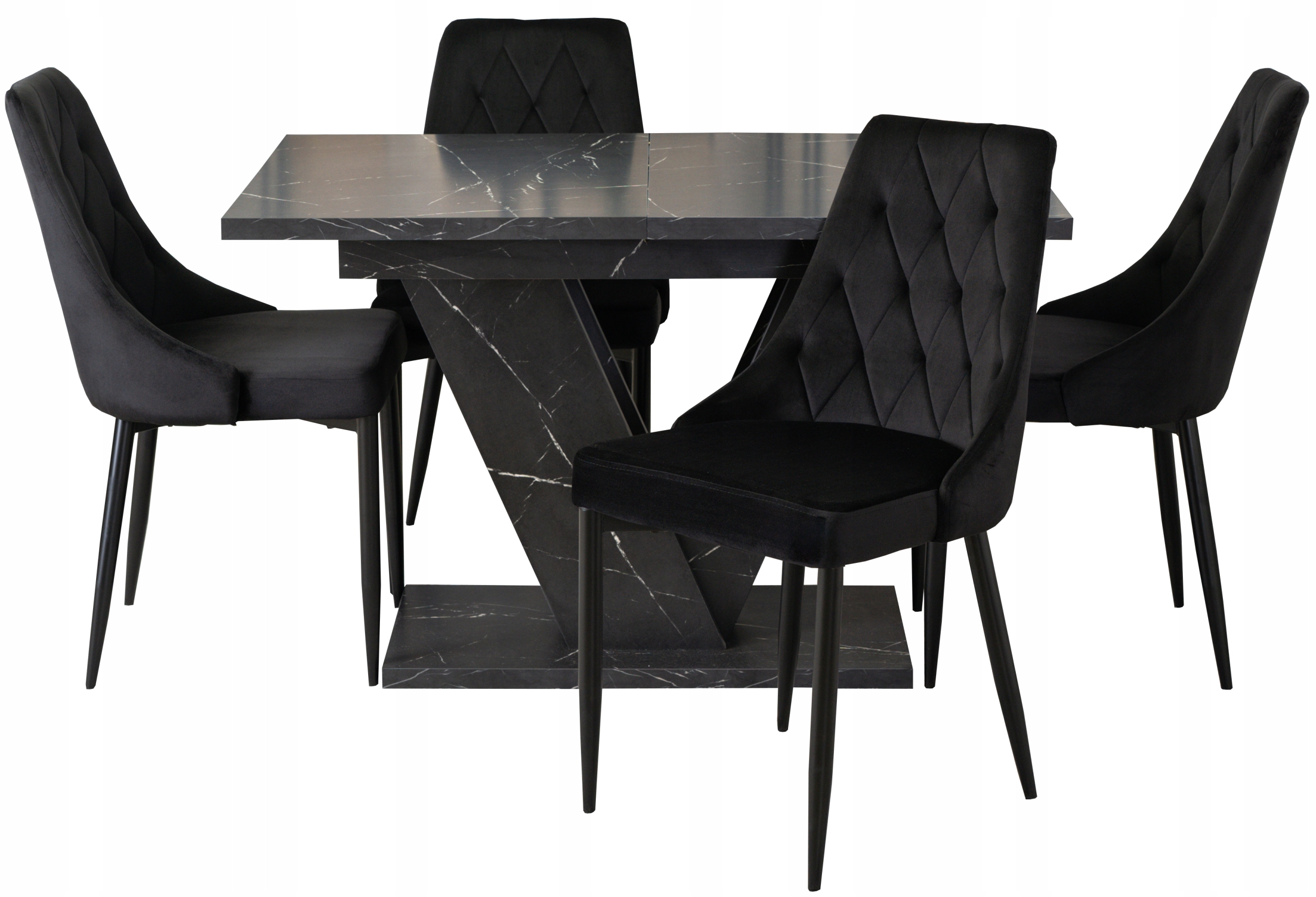 - Stół rozkładany CLARK w kolorze czarny marmur + 4x krzesło CORK w kolorze czarnym