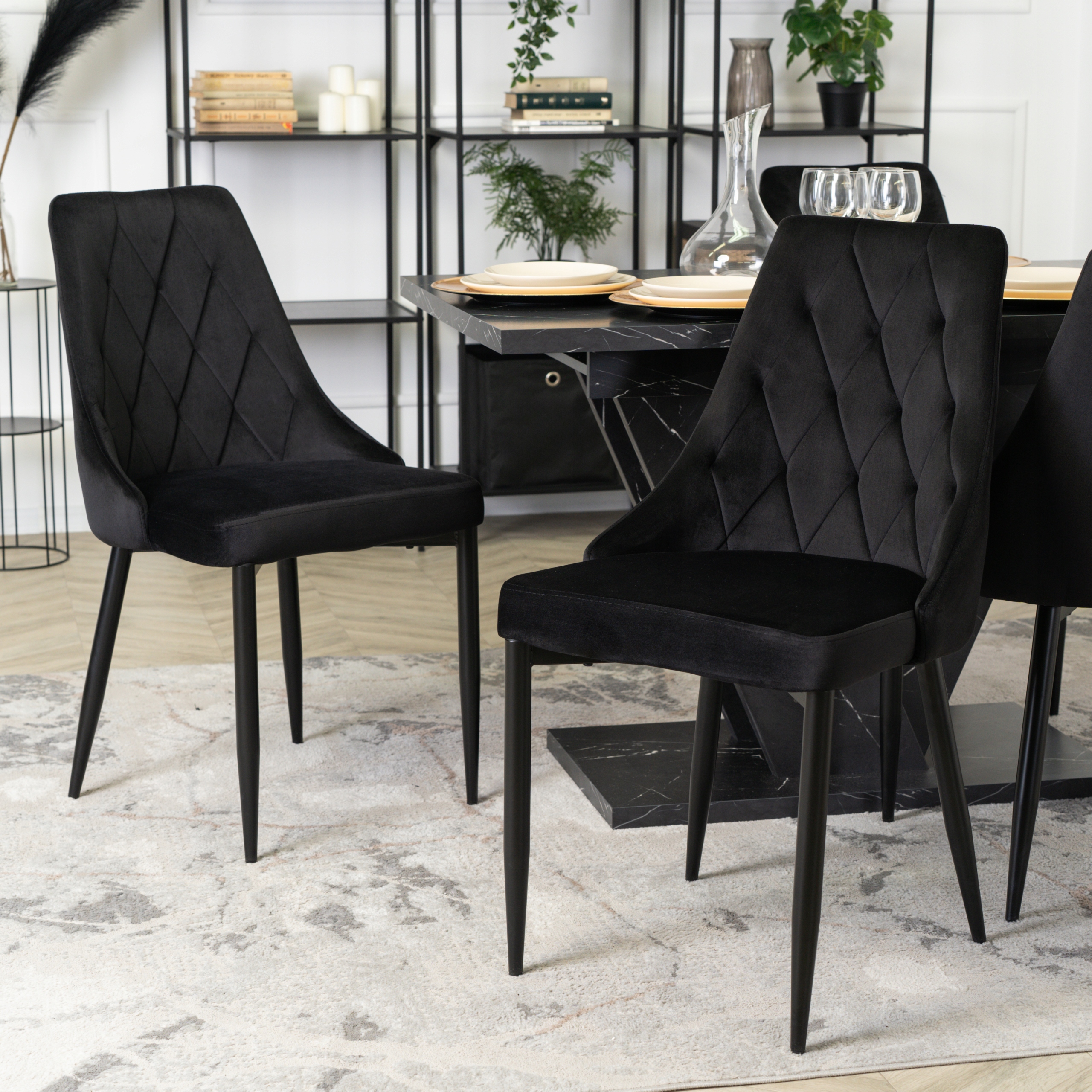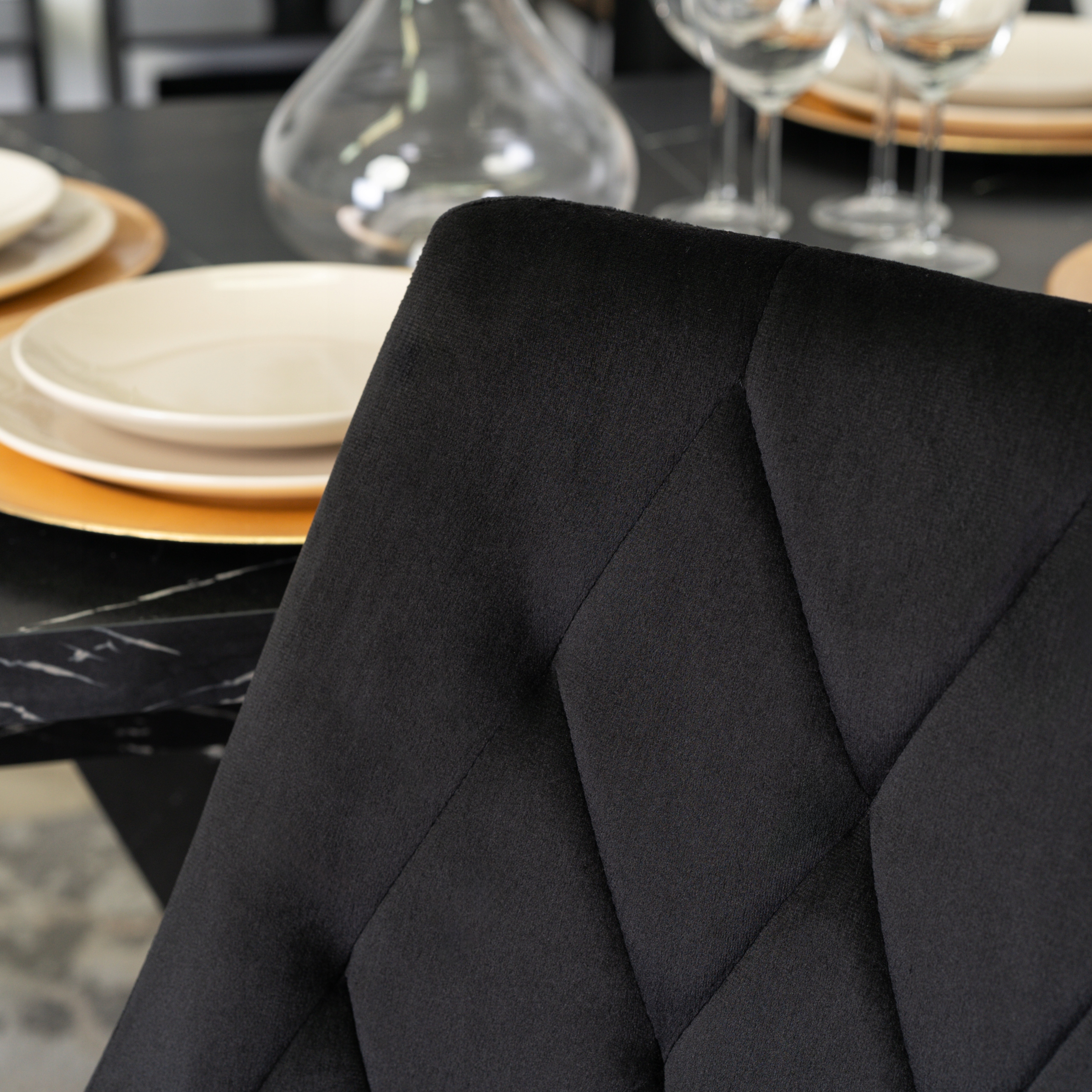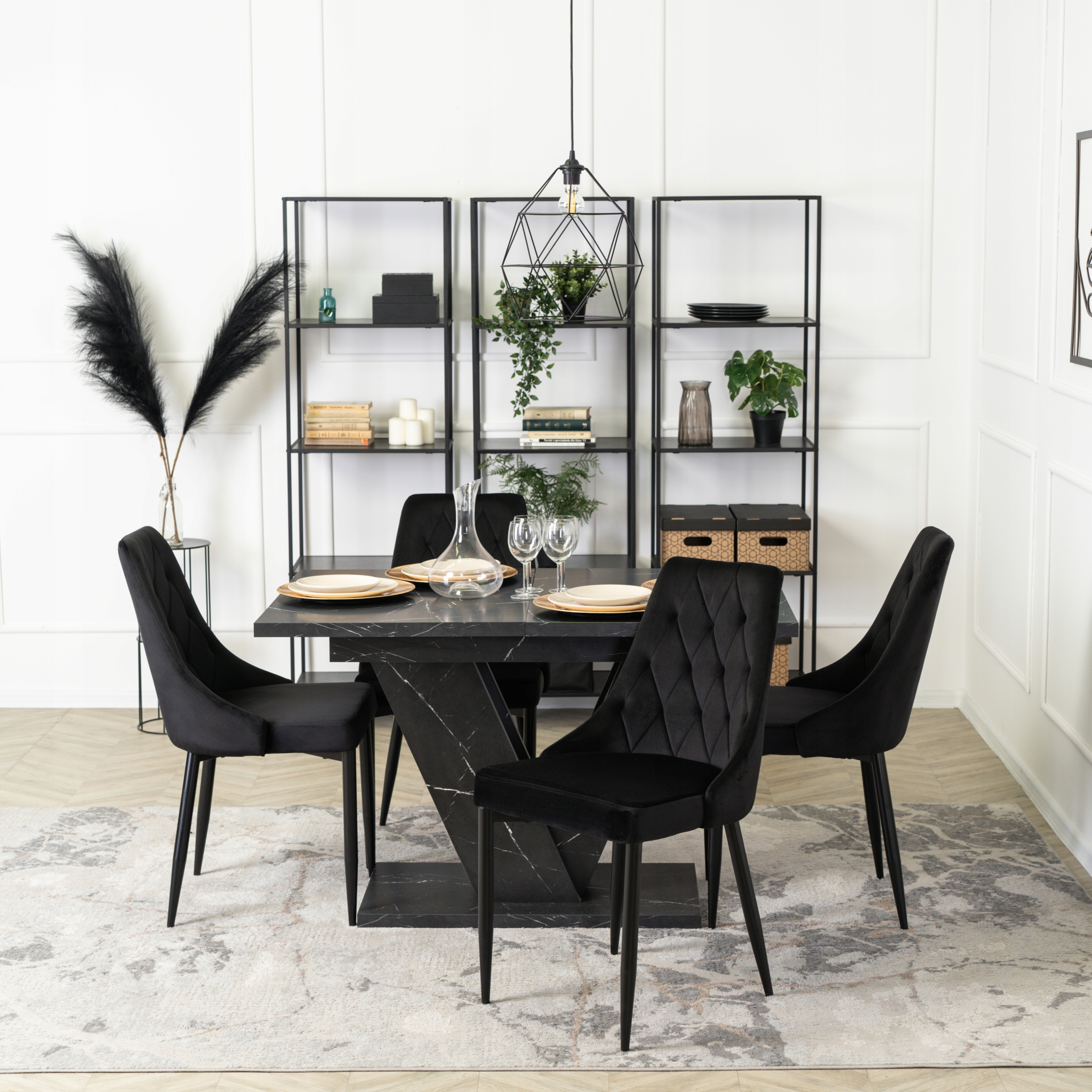 - Stół rozkładany CLARK w kolorze czarny marmur + 4x krzesło CORK w kolorze czarnym
