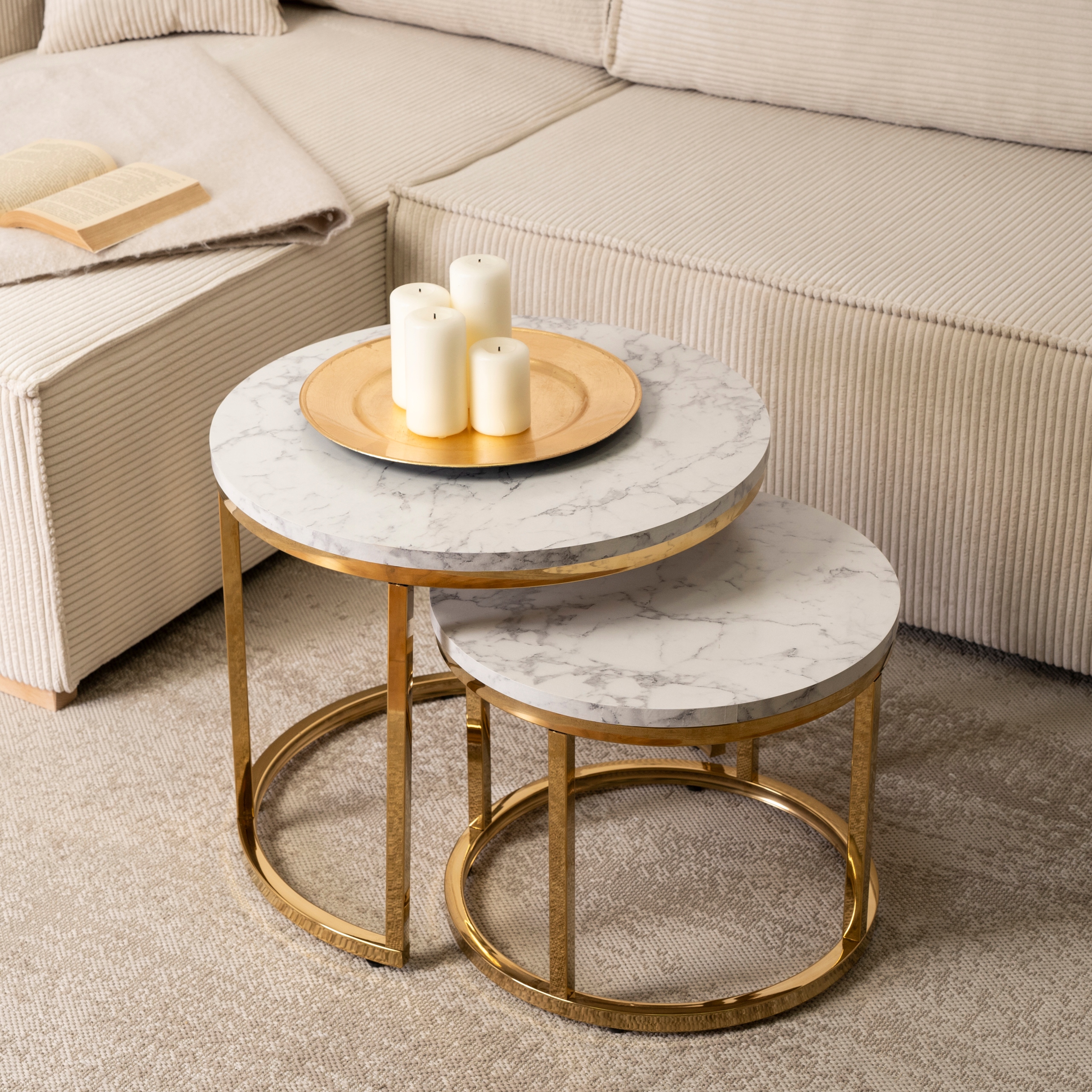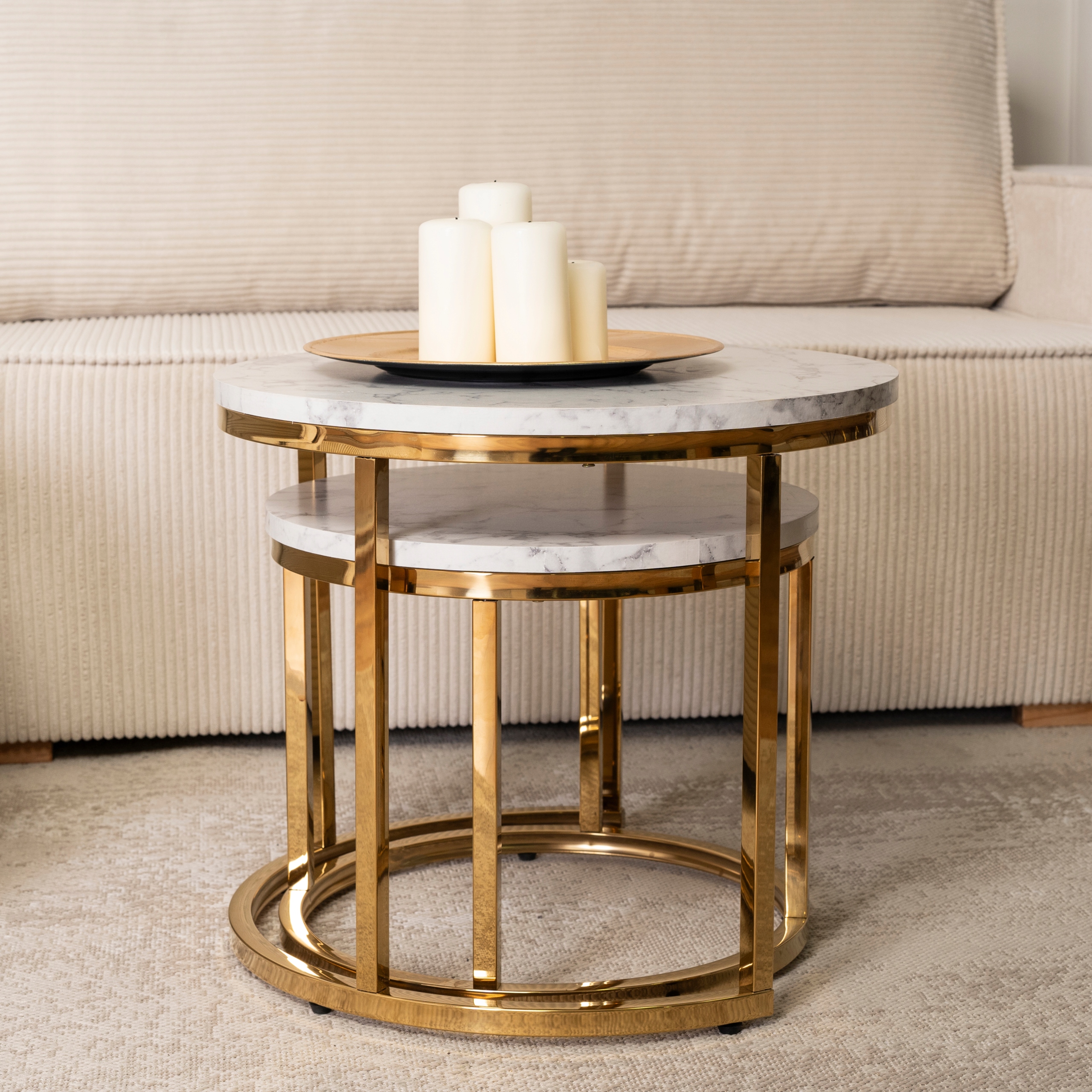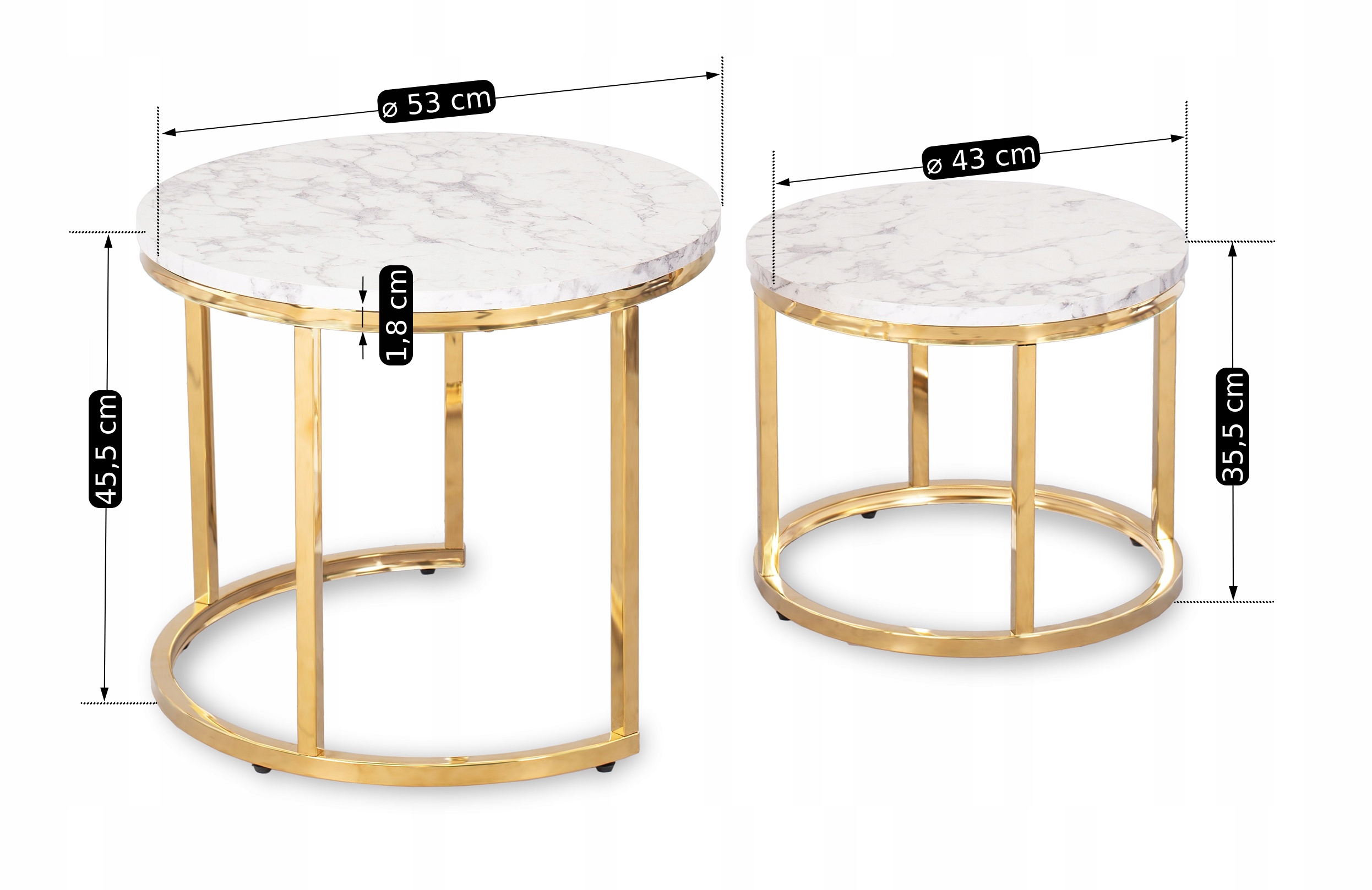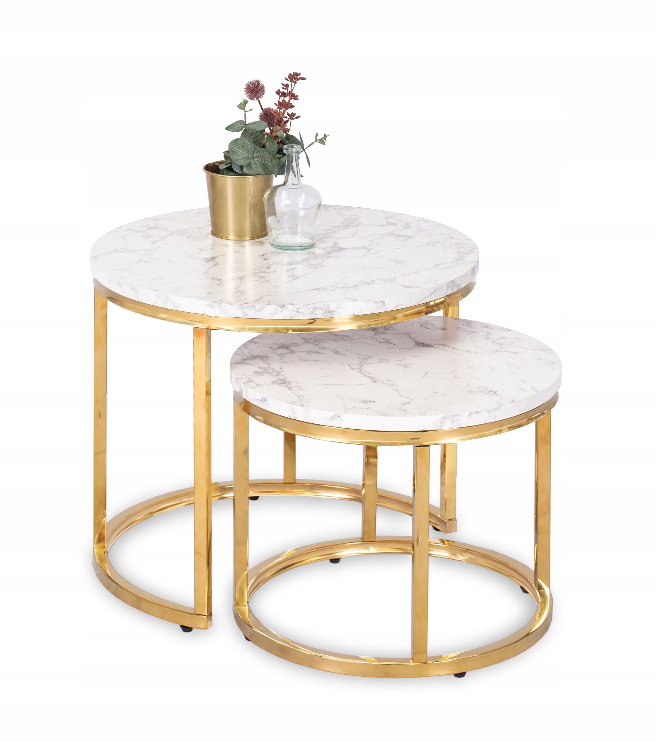 - Zestaw 2 Stolików Kawowych OLIS w kolorze biały marmur ze złotym stelażem