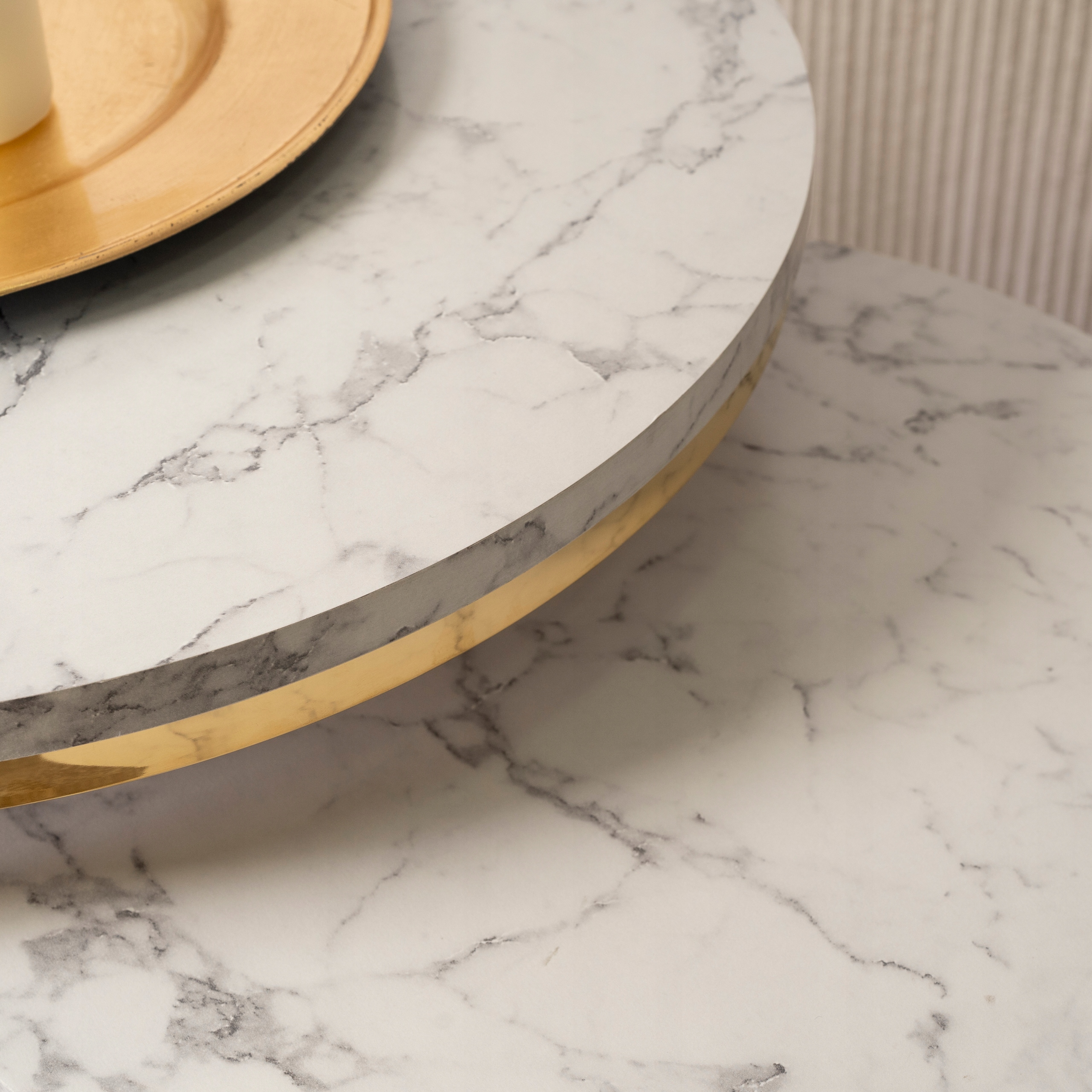 Zestaw Stolik Kawowy Okrągły 2w1 Glamour Ława Loft Biały Marmur OLIS ⭐⭐⭐⭐⭐