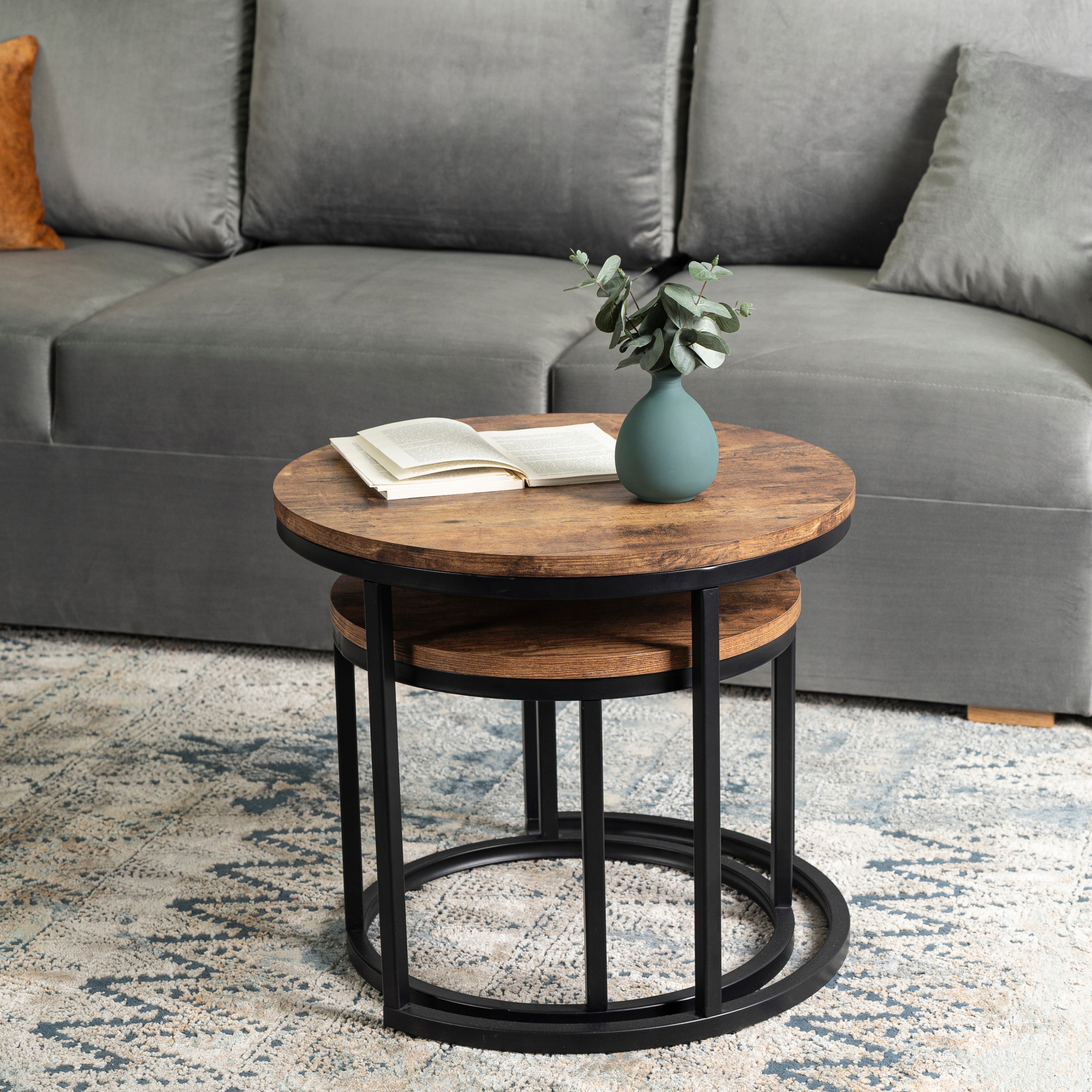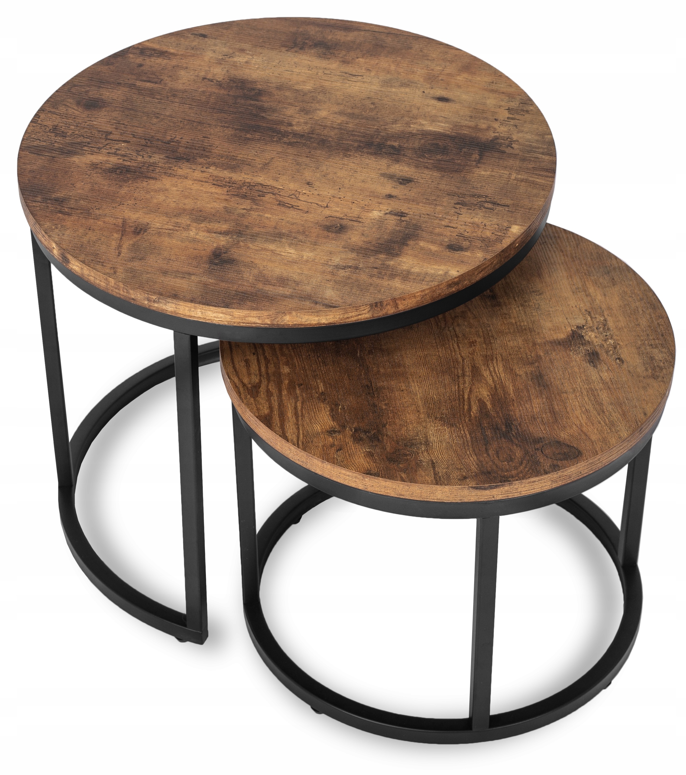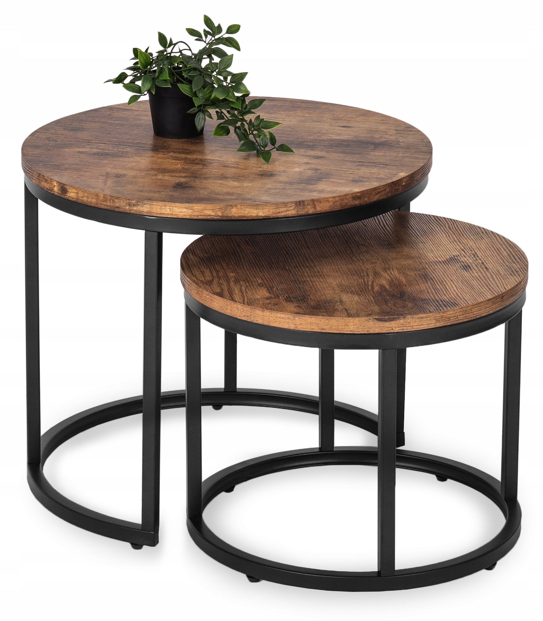 Zestaw Stolik Kawowy Okrągły 2w1 Ława Salon Loft Dąb Rustykalny Czarny FIGO ⭐⭐⭐⭐⭐