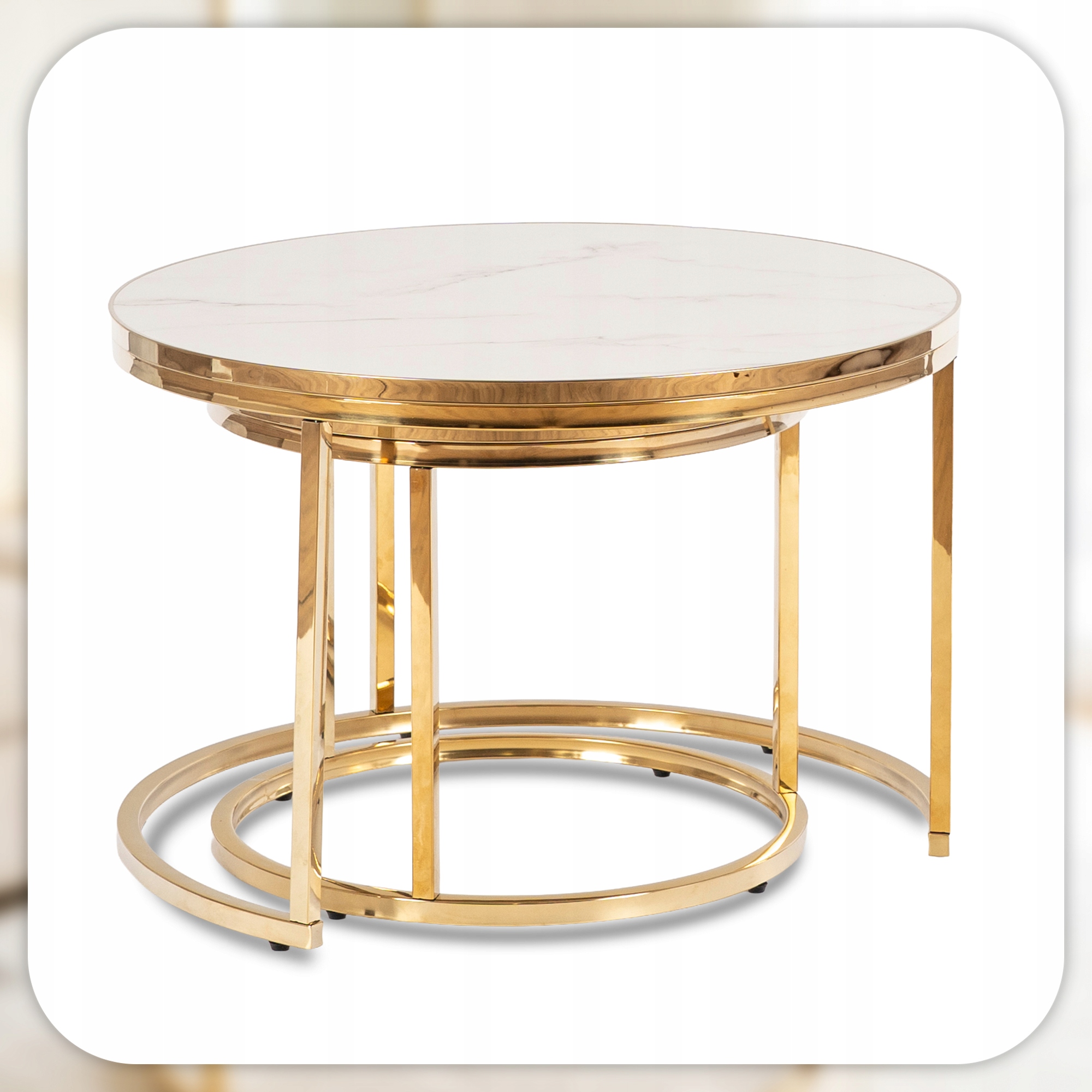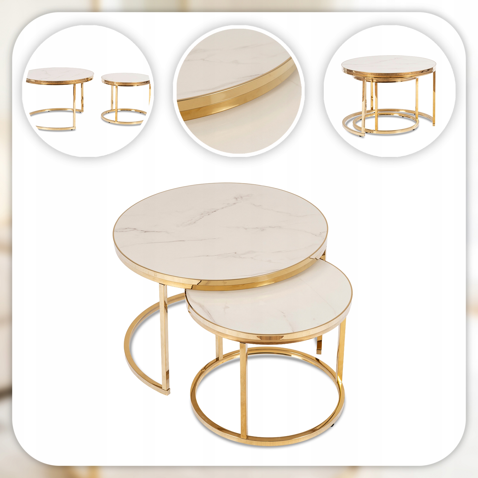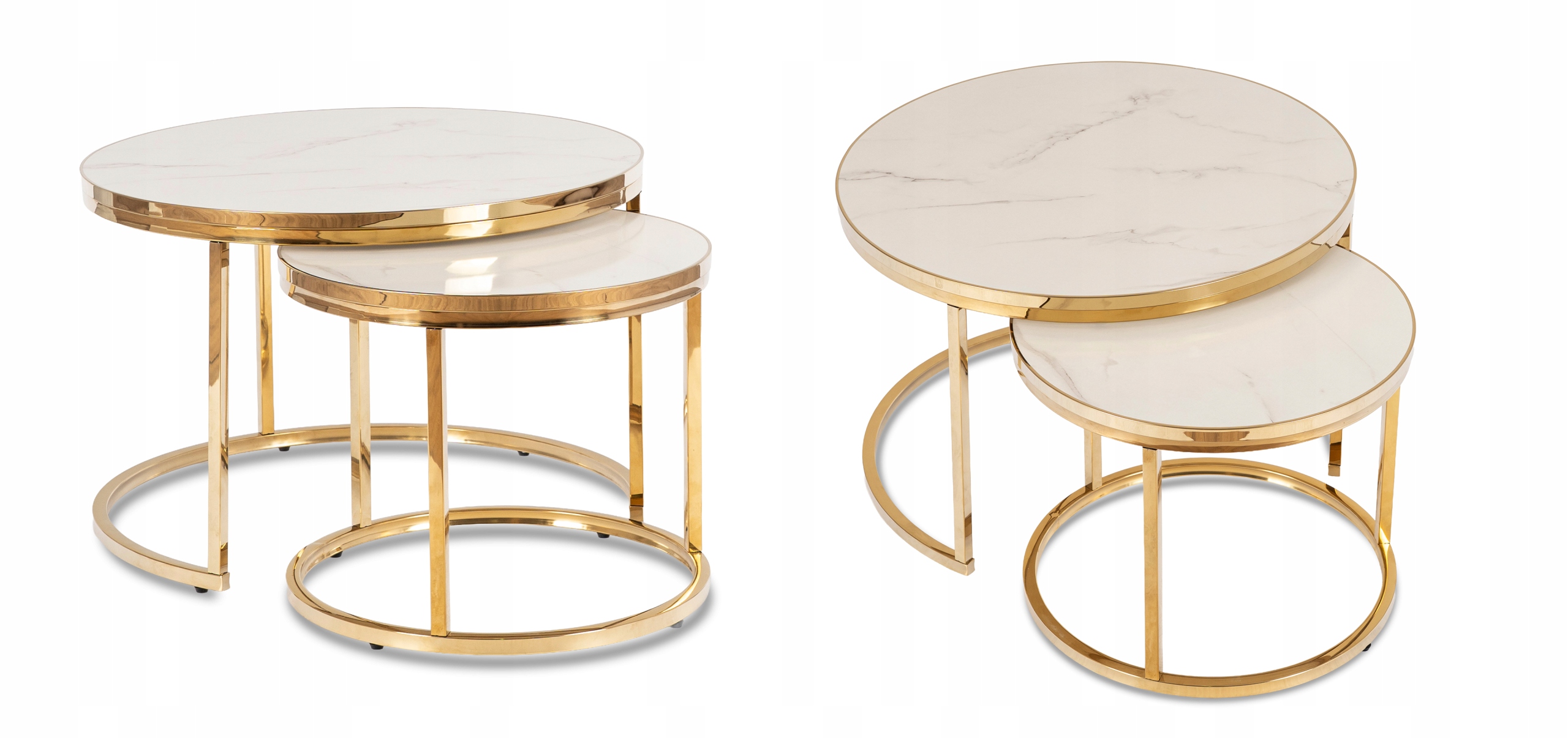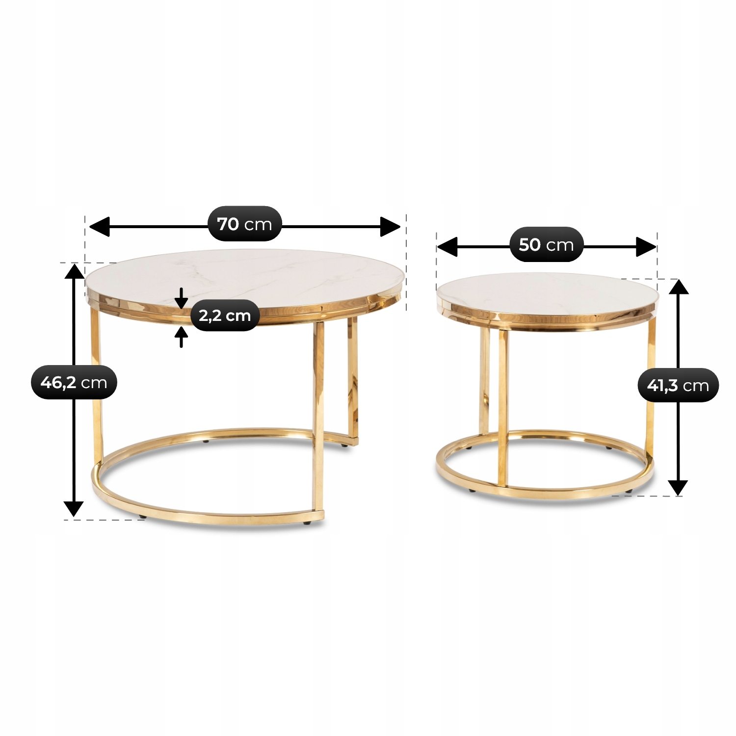 Tak. Zestaw dwóch stolików o średnicach 70 cm i 50 cm pozwala na wsuwanie mniejszego pod większy, co czyni ARON idealnym rozwiązaniem do mniejszych salonów i oszczędnych aranżacji.