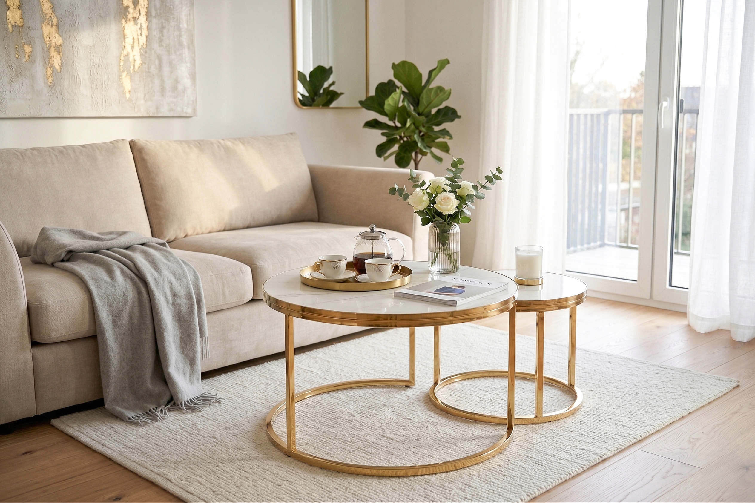 Mniejszy stolik bez problemu wsuniesz pod większy, zyskując dodatkowe miejsce, gdy tego potrzebujesz. To praktyczne rozwiązanie w małych wnętrzach, gdzie liczy się każdy centymetr przestrzeni.