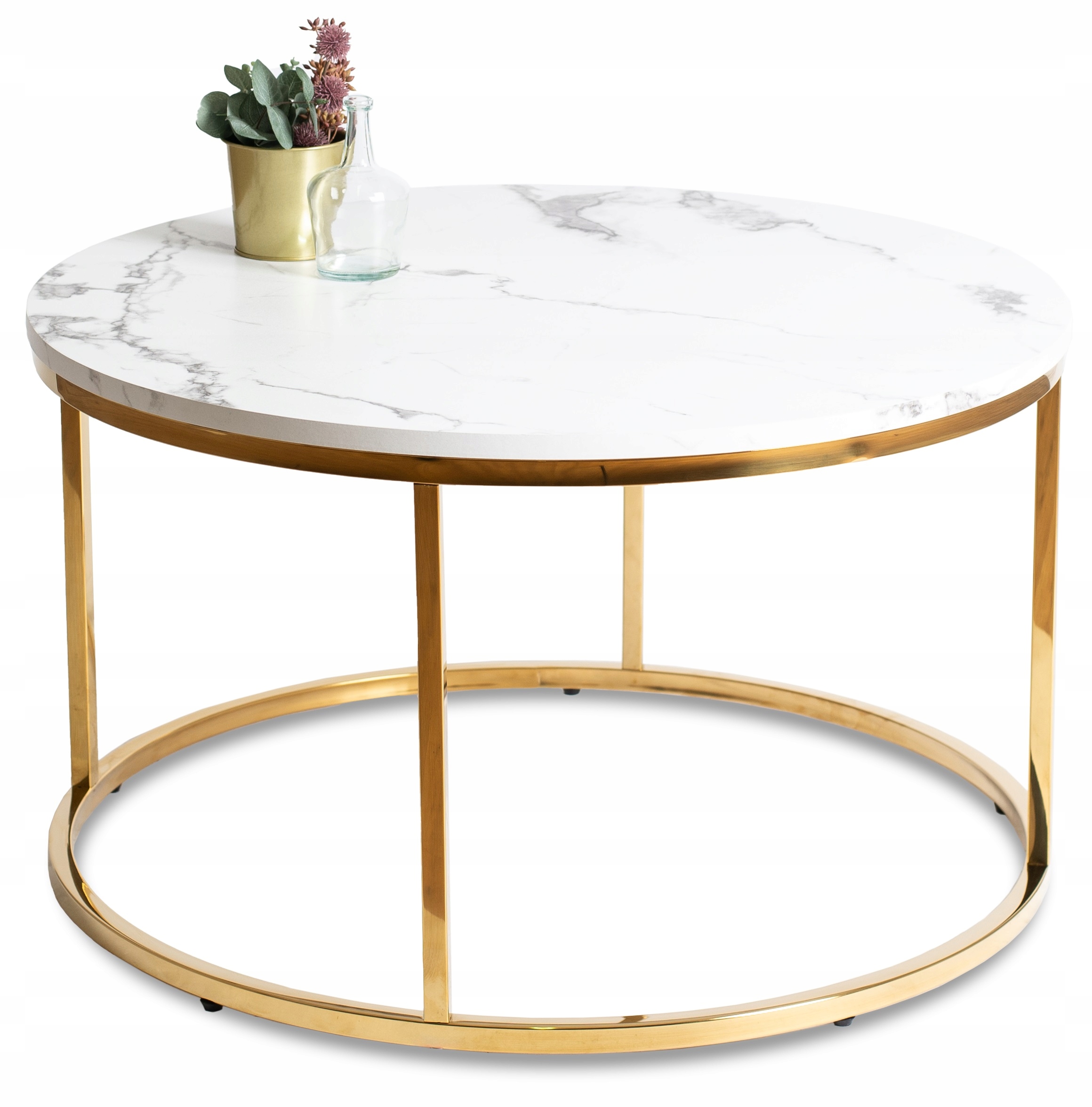 Zestaw Stolik Kawowy Okrągły Glamour Ława Biały Marmur Złoty CLIF MAX ⭐⭐⭐⭐⭐