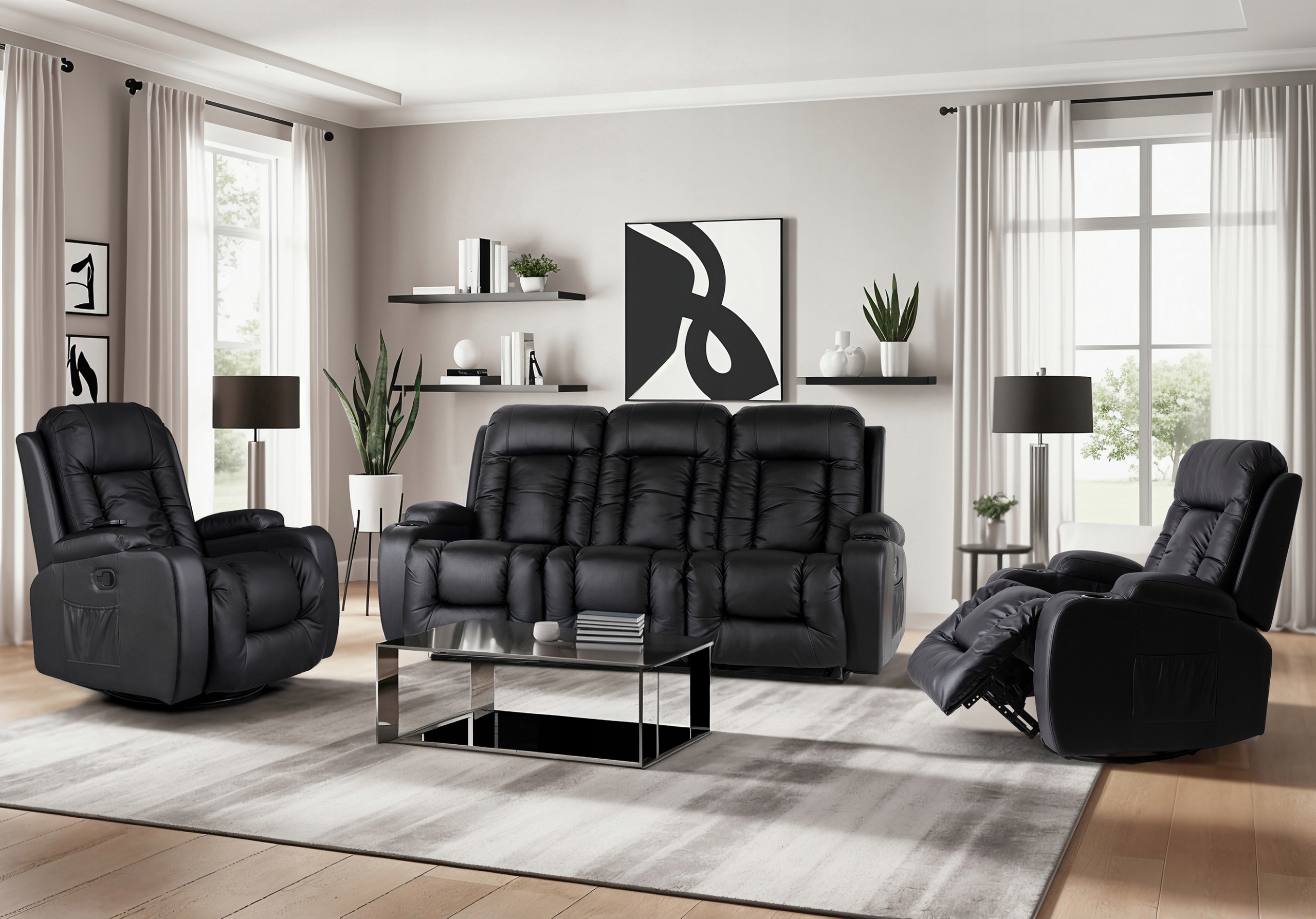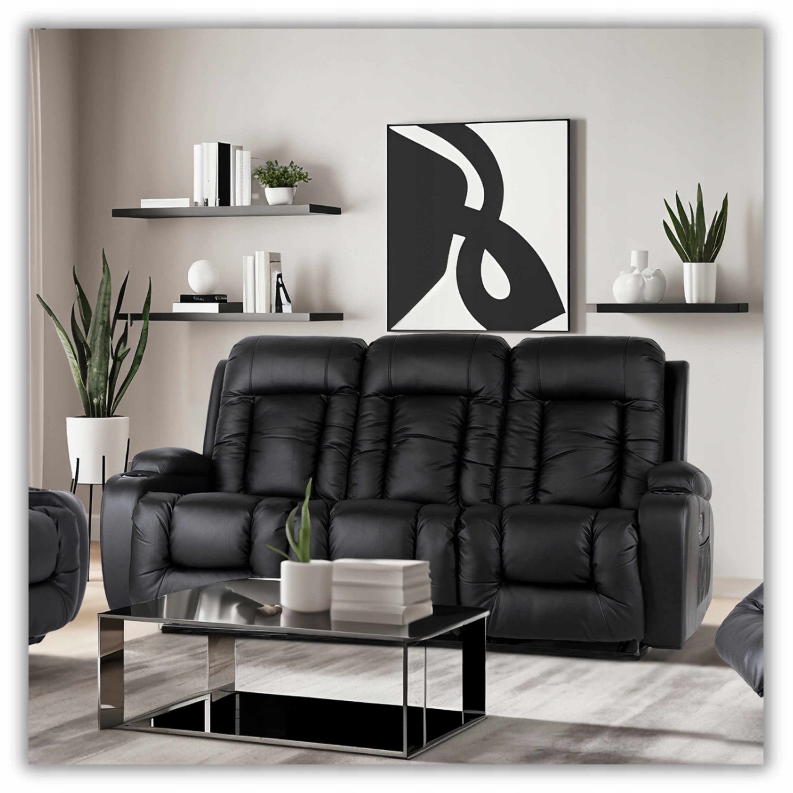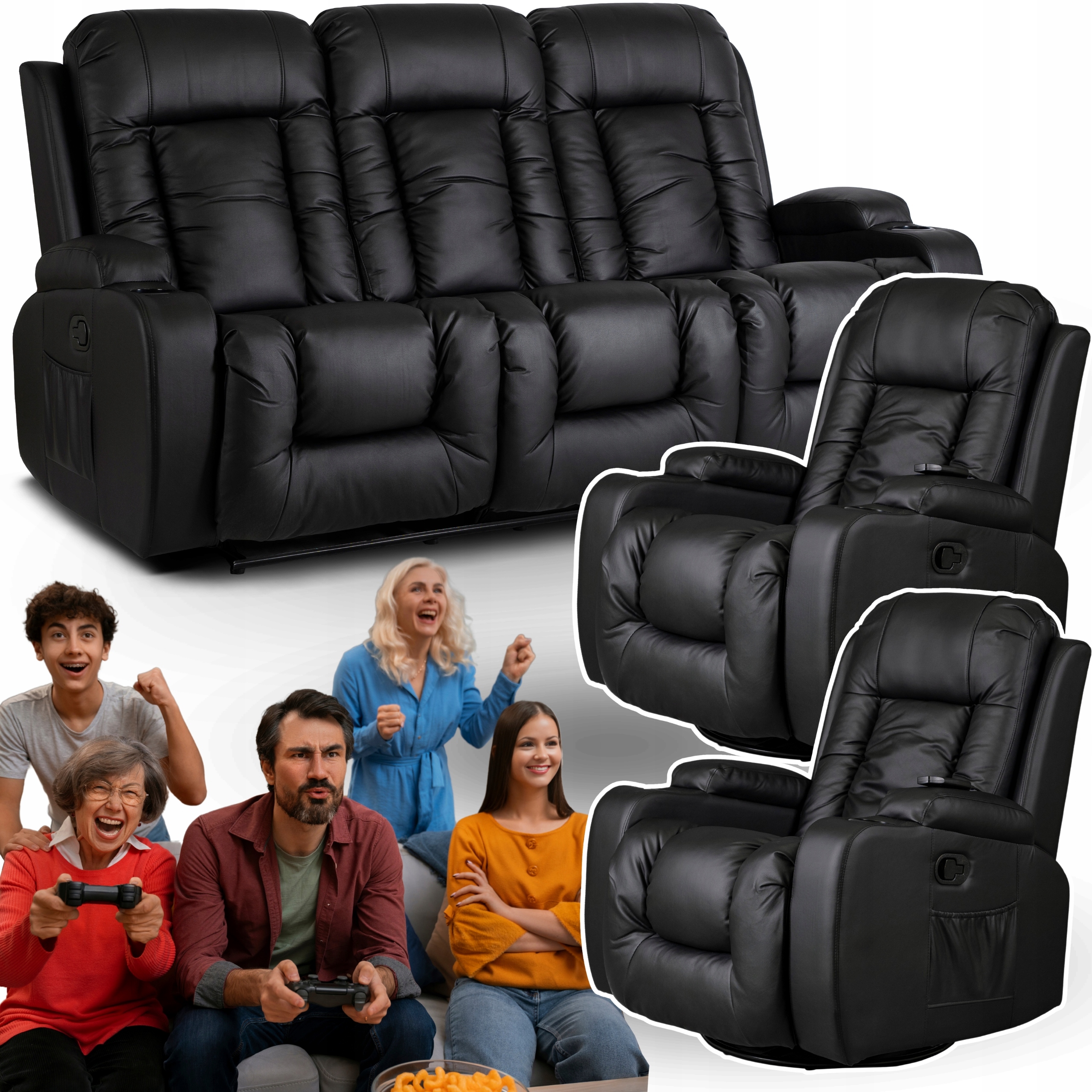 Zestaw Wypoczynkowy 2x Fotel Rozkładany Masujący Czarny Sofa Kanapa Czarna ⭐⭐⭐⭐⭐