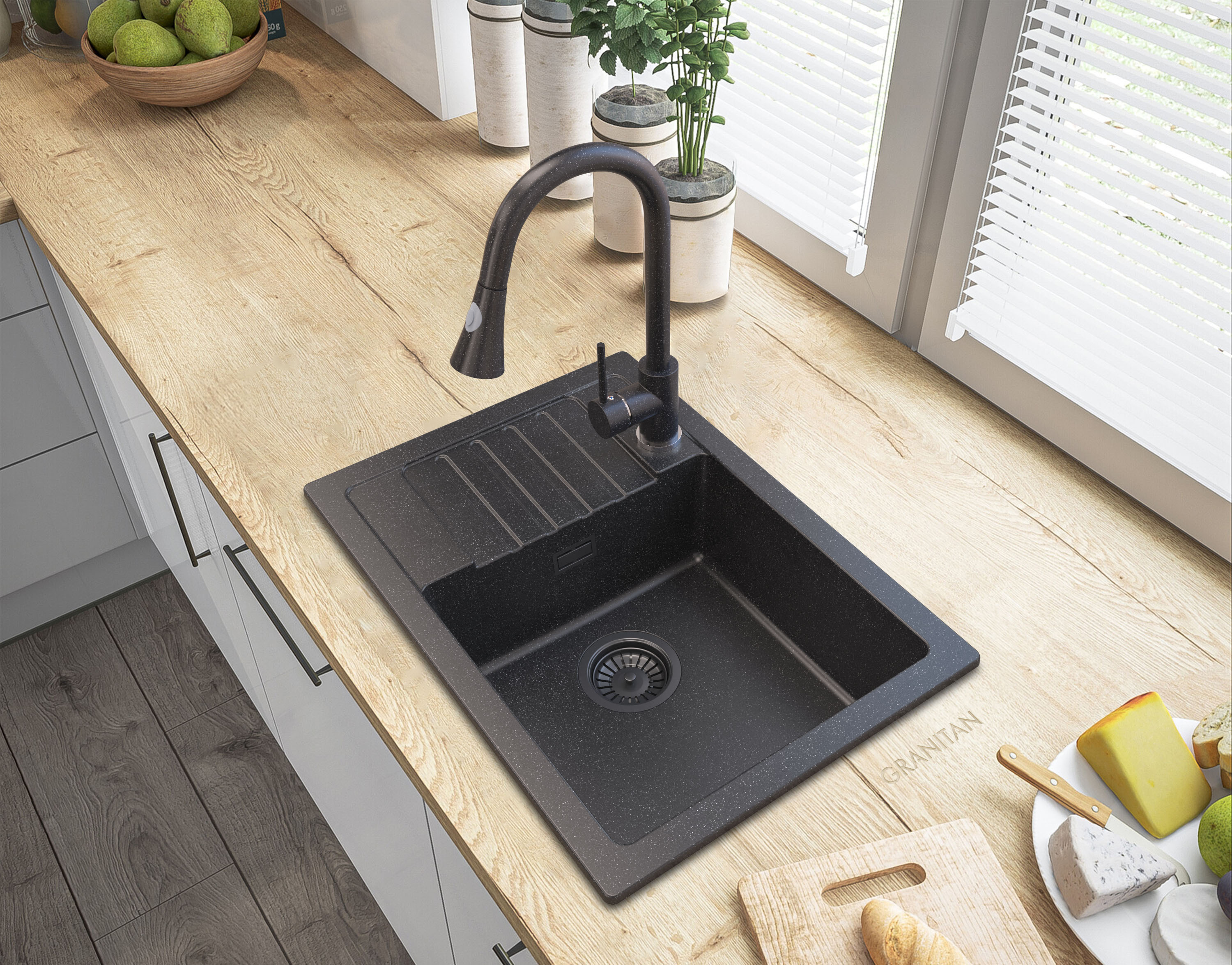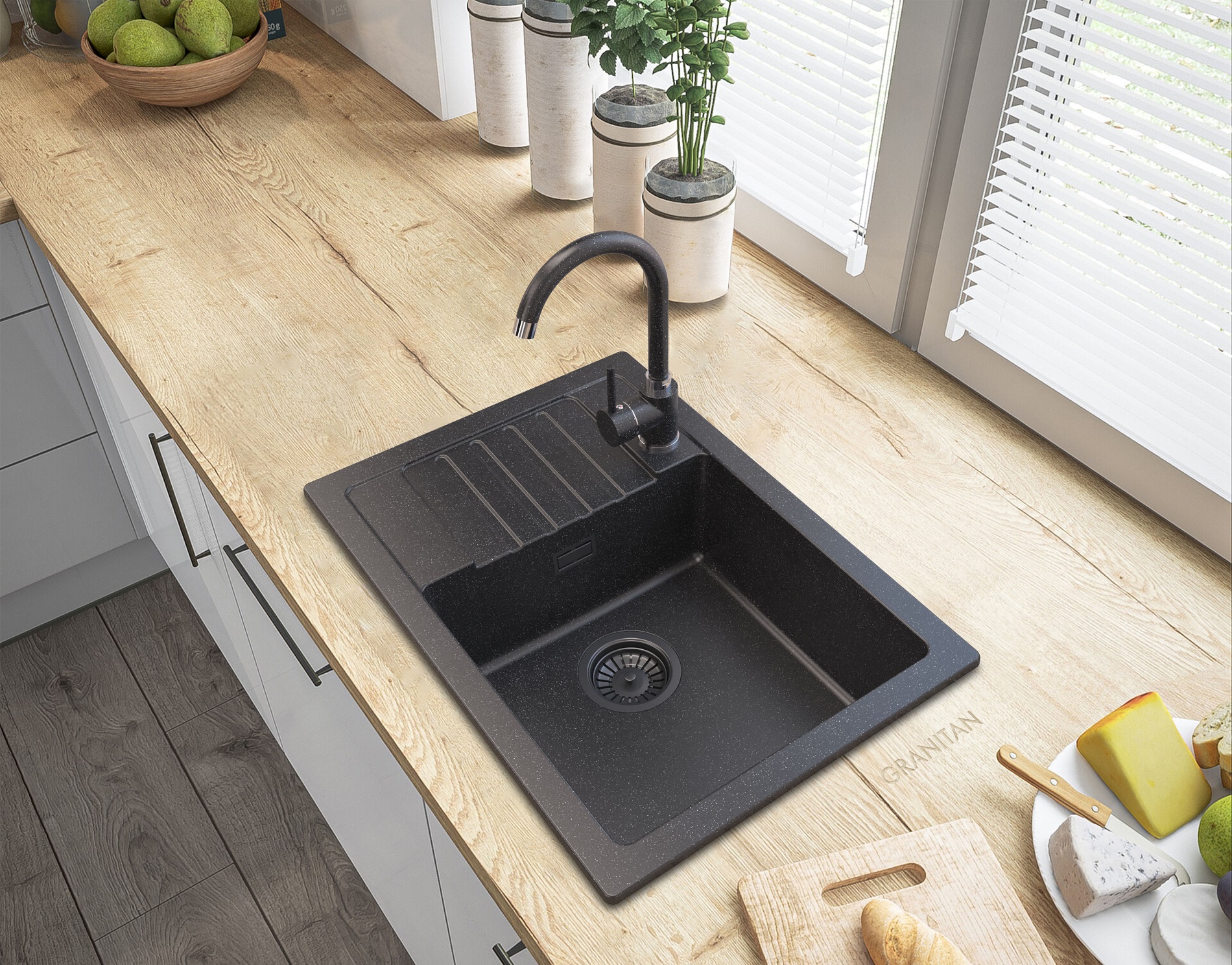 KOLOR ZLEWOZMYWAKA W POŁĄCZENIU Z SYFONEM W KOLORZE CZARNYM