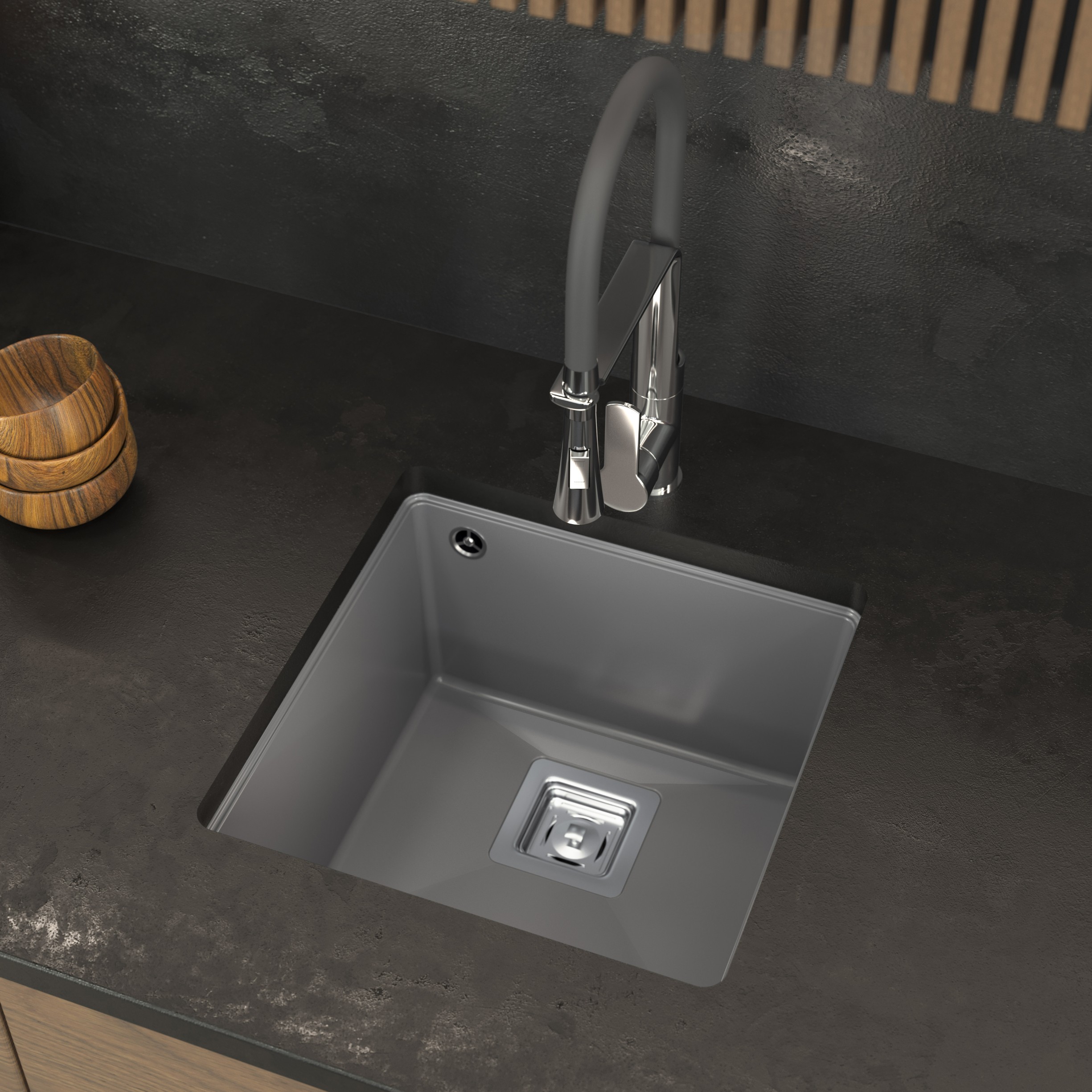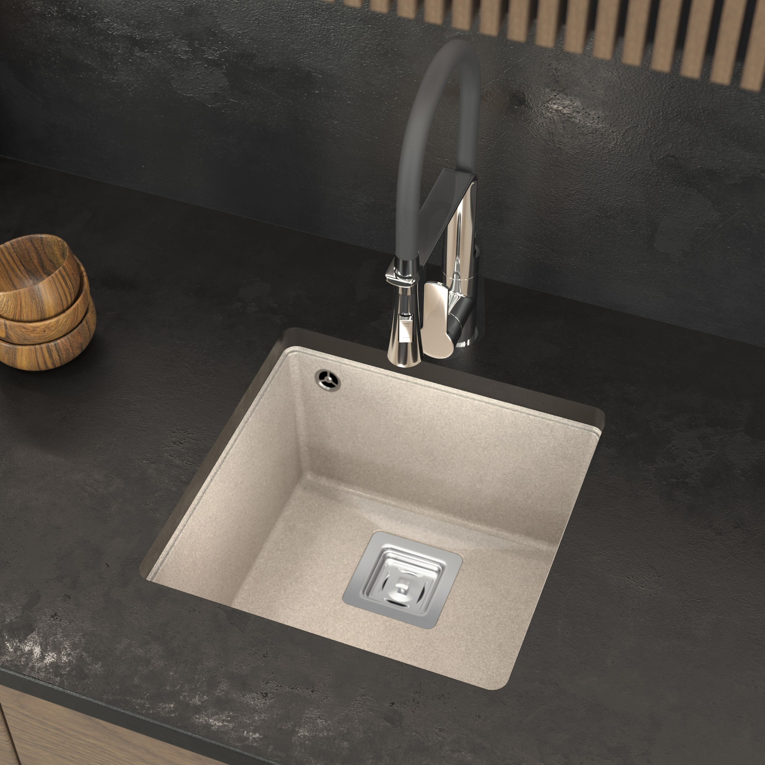 Model NAPO to podwieszany zlewozmywak występujący w dwóch rozmiarach - 42 i 55 cm. Wysokogatunkowy granit zamknięty w minimalistycznej formie tworzy produkt niezwykle atrakcyjny pod względem estetyki, który dodatkowo broni się jakością wykonania. Charakter zlewu został podkreślony syfonem z kwadratowym odpływem, dlatego całość tworzy intrygującą, a zarazem bardzo nowoczesną formę.