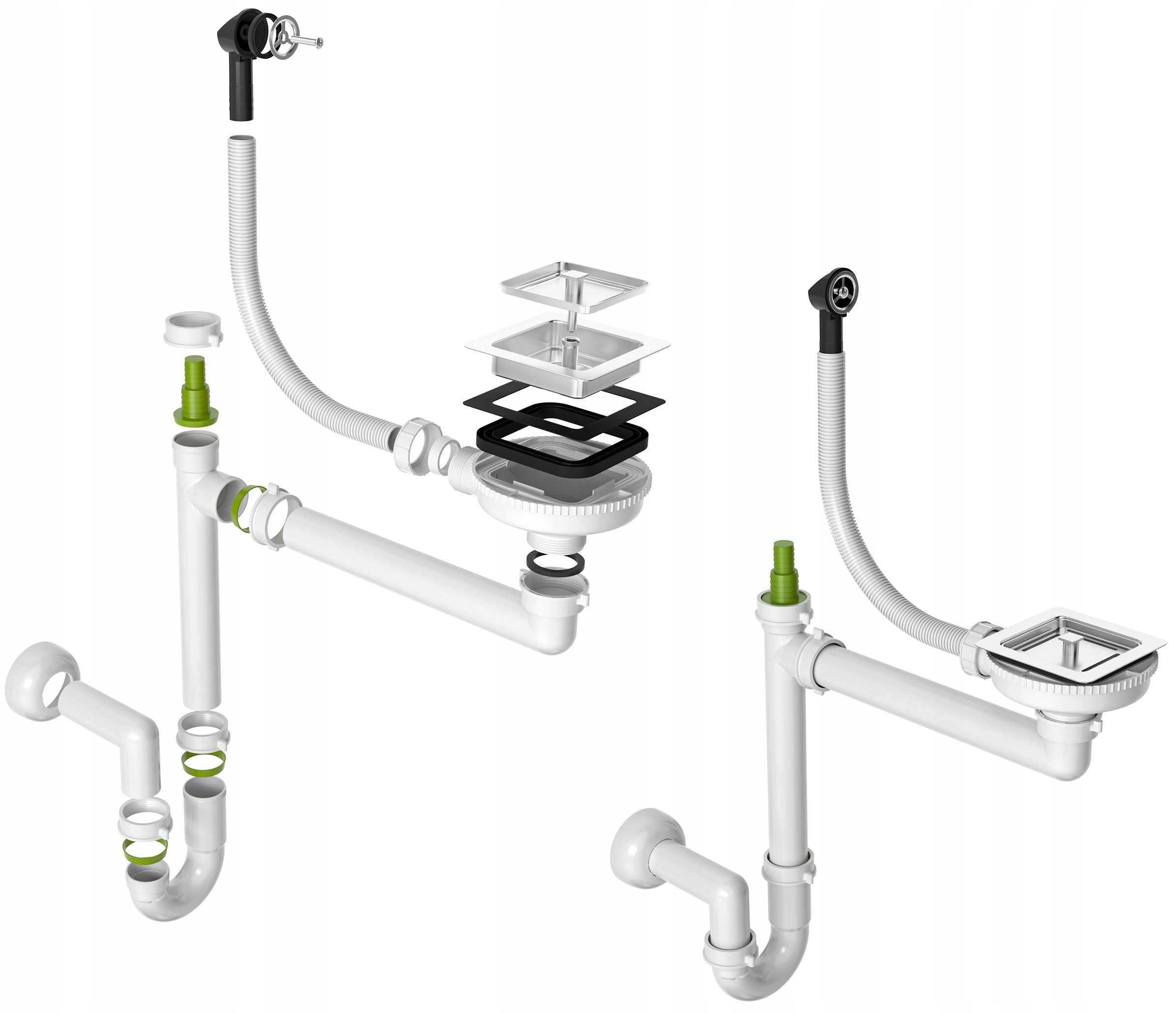 Zlewozmywak dostępny jest z syfonem manualnym z możliwością podłączenia pralki lub zmywarki.