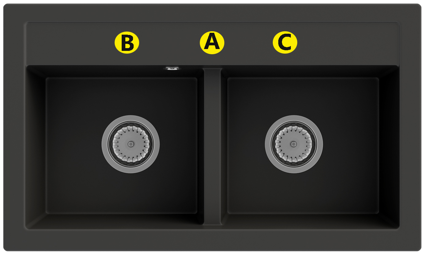 2. ILOŚĆ OTWORÓW W ZLEWOZMYWAKU I MIEJSCE WYKONANIA (A, B, C)