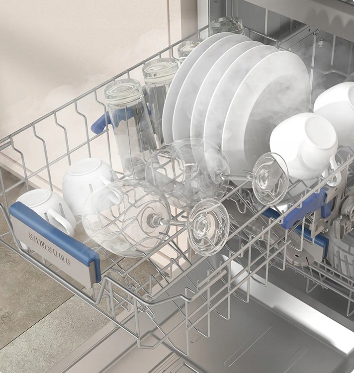 Ciesz się lśniąco czystymi naczyniami za każdym razem dzięki funkcji Automatycznego otwierania drzwi. Gdy płukanie i suszenie zostanie zakończone, drzwi automatycznie otwierają się na 10 cm, aby umożliwić odprowadzenie pary. W efekcie naczynia są szybciej i lepiej dosuszone.
